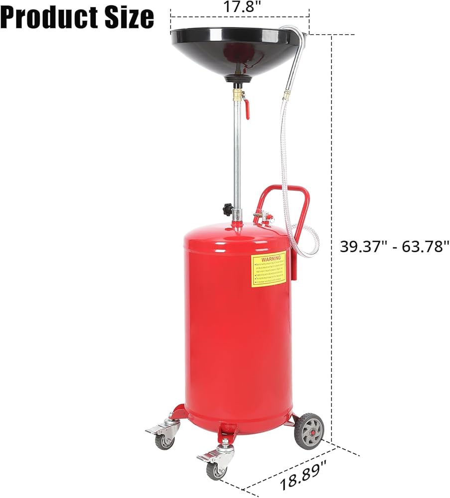 ارتفاع قابل للتعديل: يتميز خرطوم الصرف سعة 8 جالون بمجموعة متنوعة من الارتفاعات القابلة للتعديل من 33.86 إلى 46.06 بوصة لتصريف السوائل من المركبات على المصاعد. قادر على إنجاز عملية جمع زيوت نفايات السيارات بشكل صحيح. مثالية لتجميع زيوت نفايات السيارات بشكل مثالي في المصانع ومحلات تصليح السيارات والمنازل.