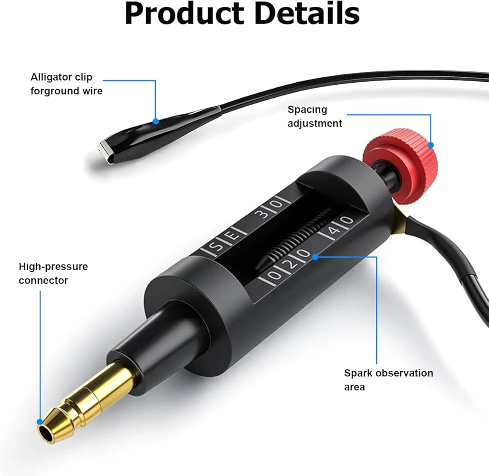 【Easy to Use】: It is very simple to fix the clip on the car engine, insert the other end into the spark plug wire, and then read the length of the spark through the small window of the tester.