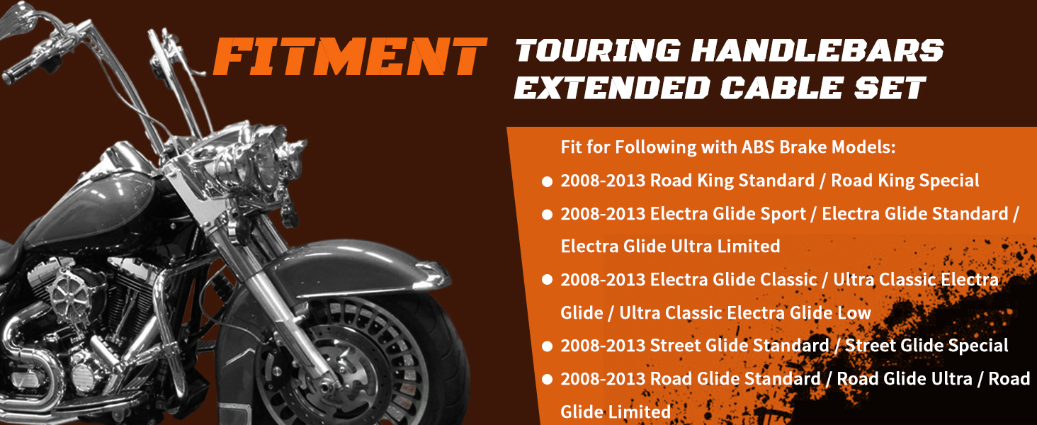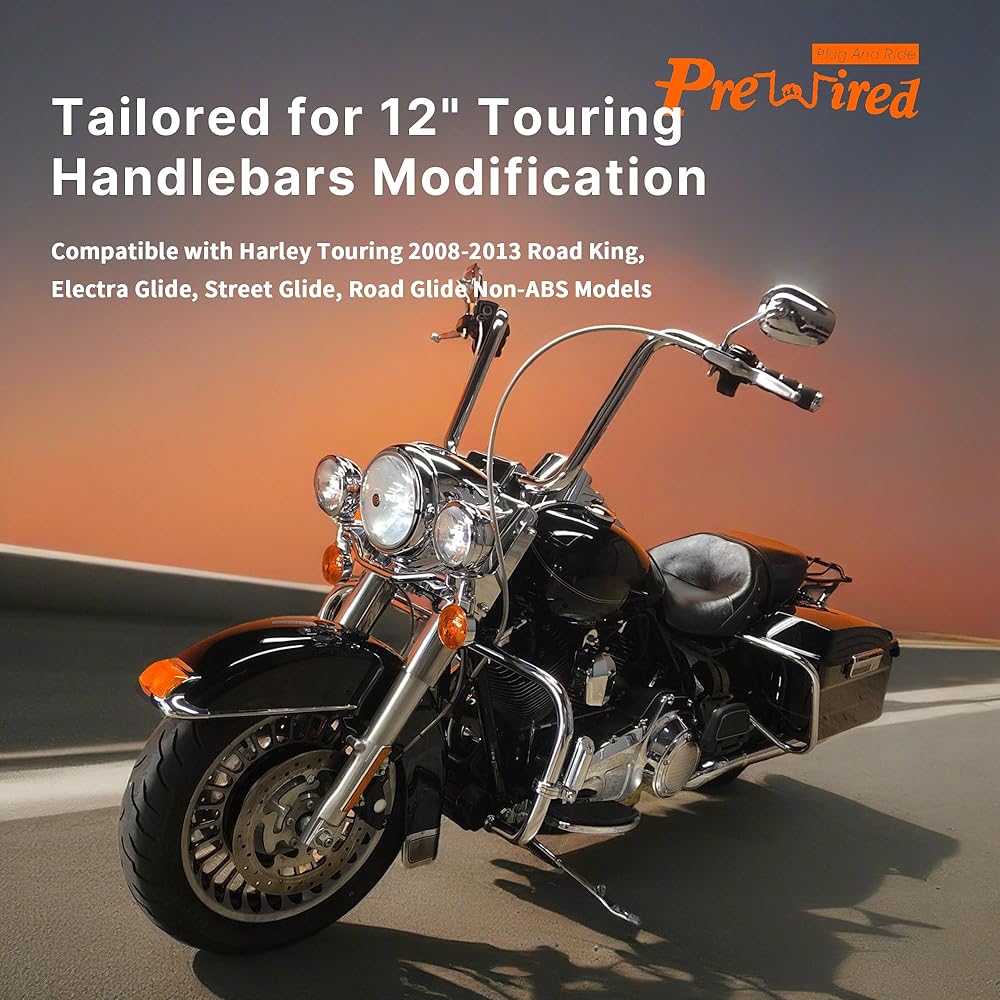• قائمة الإعداد - مجموعات تمديد كابل المقود ذات الشماعة مقاس 12 بوصة مناسبة لموديلات Harley Touring 2008-2013 غير ABS، بما في ذلك Road King وElectra Glide وStreet Glide وRoad Glide
