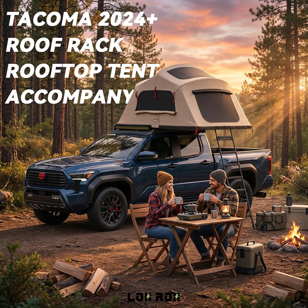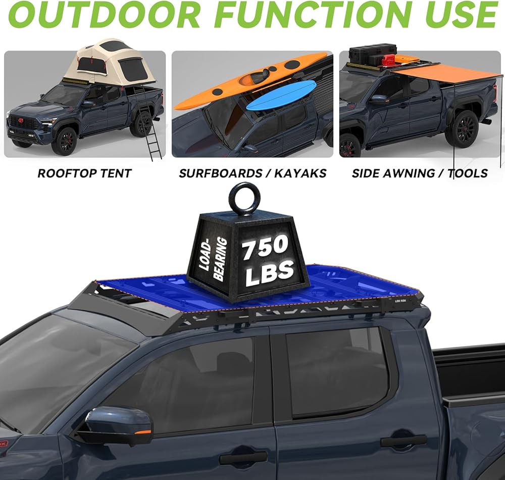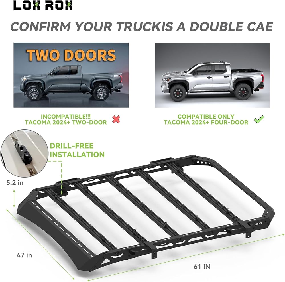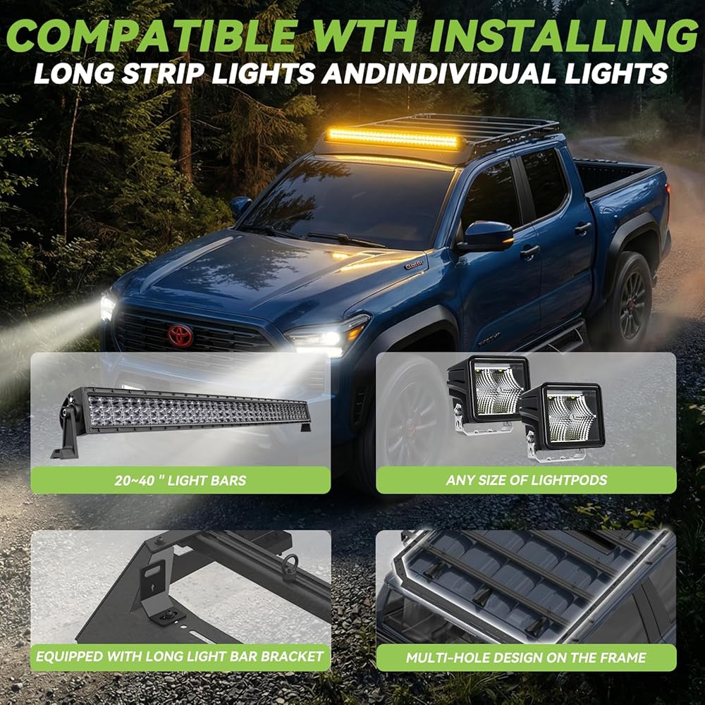 حامل سقف عالي التحمل لسيارة بيك آب تاكوما المزدوجة ذات الكابينة المزدوجة و4 أبواب لعام 2024 | متعددة الوظائف | مطلي بمسحوق مقاوم للصدأ | لا يوجد تركيب الحفر