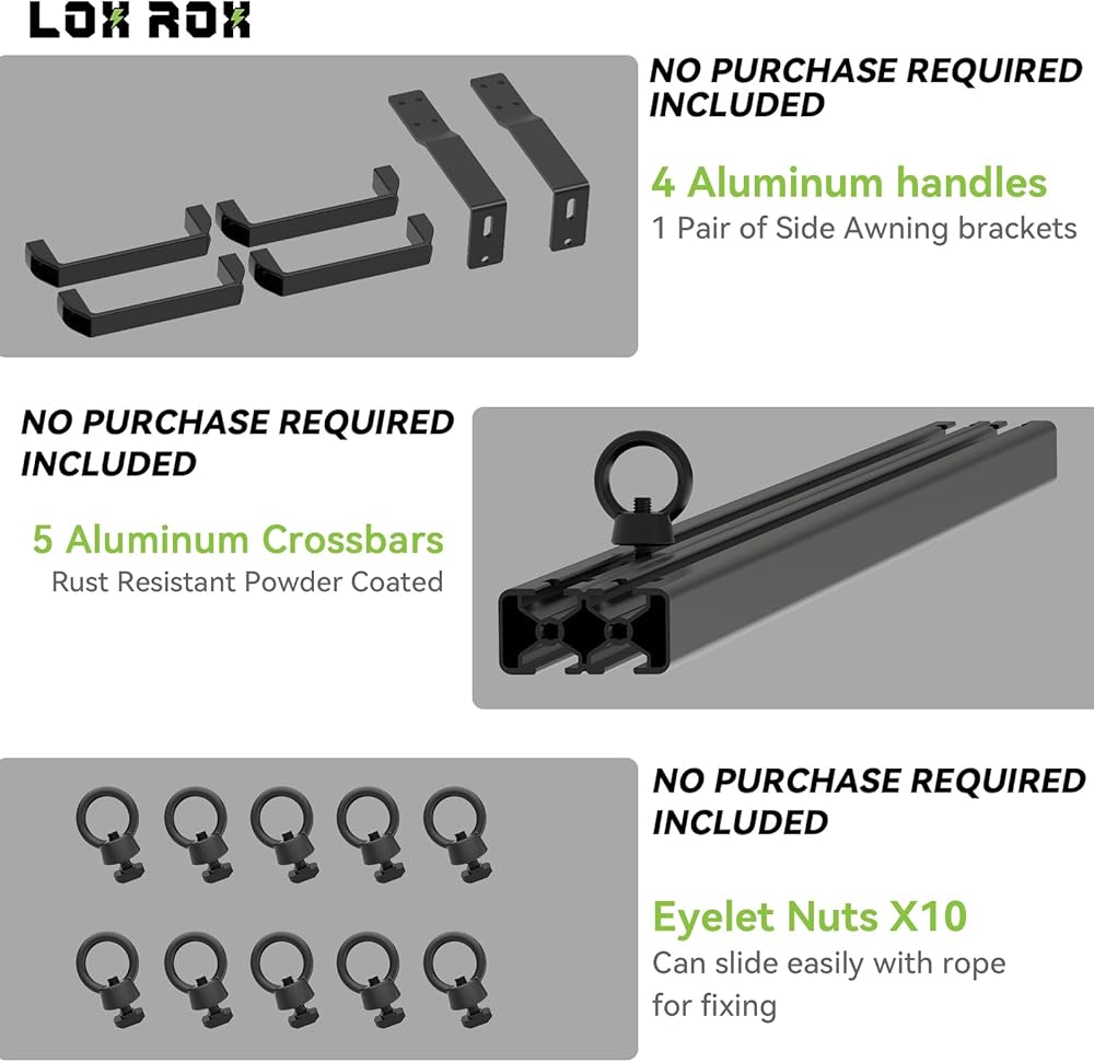 وضع محجوز متعدد الفتحات، تجميع مجاني، بالنسبة لك في الهواء الطلق، هذا الرف يسمح لك بتركيب معدات الهبوط الخاصة بك، والقارب المطاطي، ورف الدراجة، والخيمة، والمظلة، والأمتعة، وأدوات النجاة، ولوحة الاسترداد، وعلب وقود الغاز، والمجارف، والإطارات الاحتياطية ، قضبان وكبسولات إضاءة LED، طفايات، المزيد!