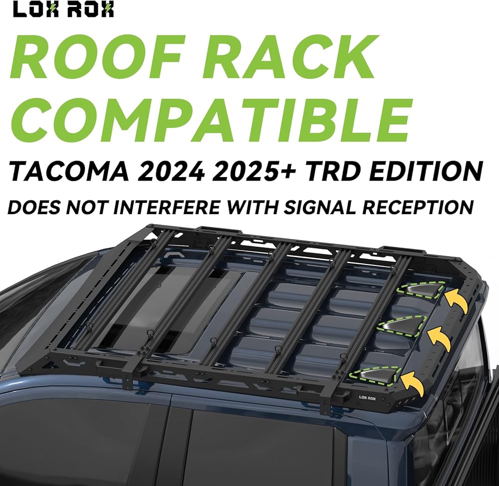 ملحقات حامل السقف شديدة التحمل متوافقة مع 2024 toyota Tacoma Double Cab 4 أبواب متوافقة أيضًا مع جميع إصدارات Tacoma TRD ولا تتداخل مع أجهزة استقبال الإشارة