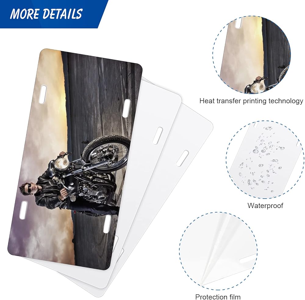 【تحتوي على طبقة واقية】 تحتوي لوحات الترخيص الفارغة للفينيل على طبقة واقية شفافة على السطح لمنع الخدوش أثناء النقل، تأكد من أن لوحة الترخيص جديدة تمامًا عند الحصول عليها. يرجى تمزيق الطبقة الواقية عند استخدام فراغات لوحة الترخيص بالتسامي.