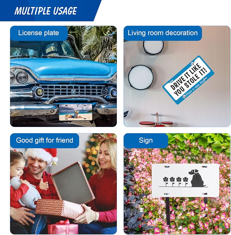 【وظيفة DIY】 لوحات الترخيص الفارغة لتسامي الأوفست فارغة ويمكن تخصيص أي نمط من خلال الصور/النصوص التي تصنعها بنفسك باستخدام تقنية طباعة نقل الأوفست، أو تزيينها بالملصقات وطباعة الشاشة والطباعة بالأشعة فوق البنفسجية، الصور لا تبهت .