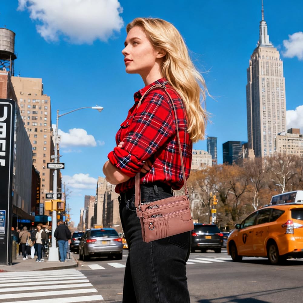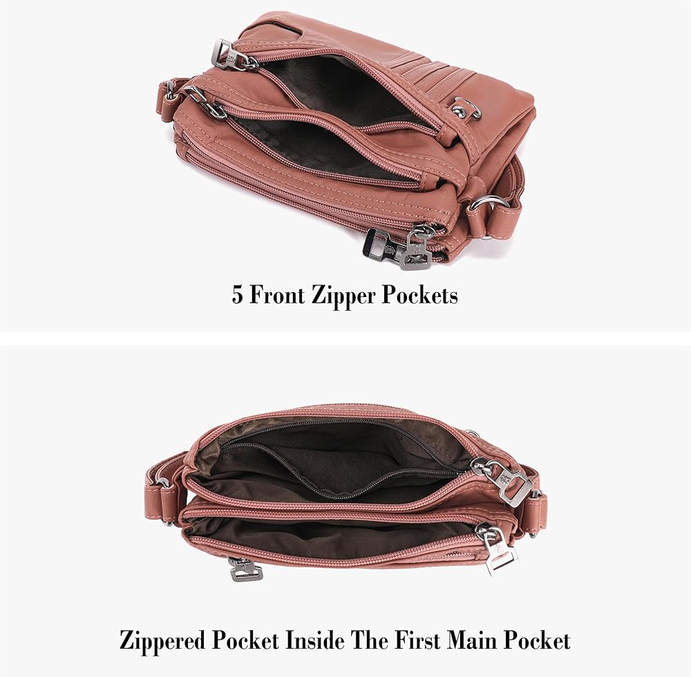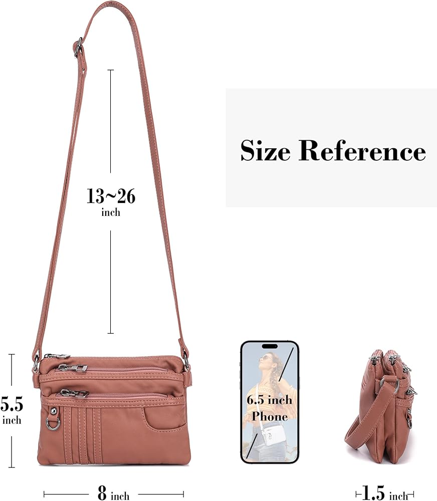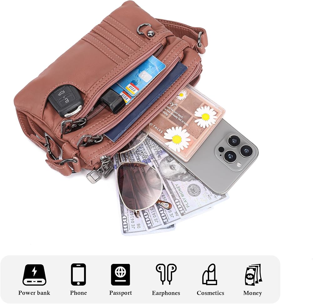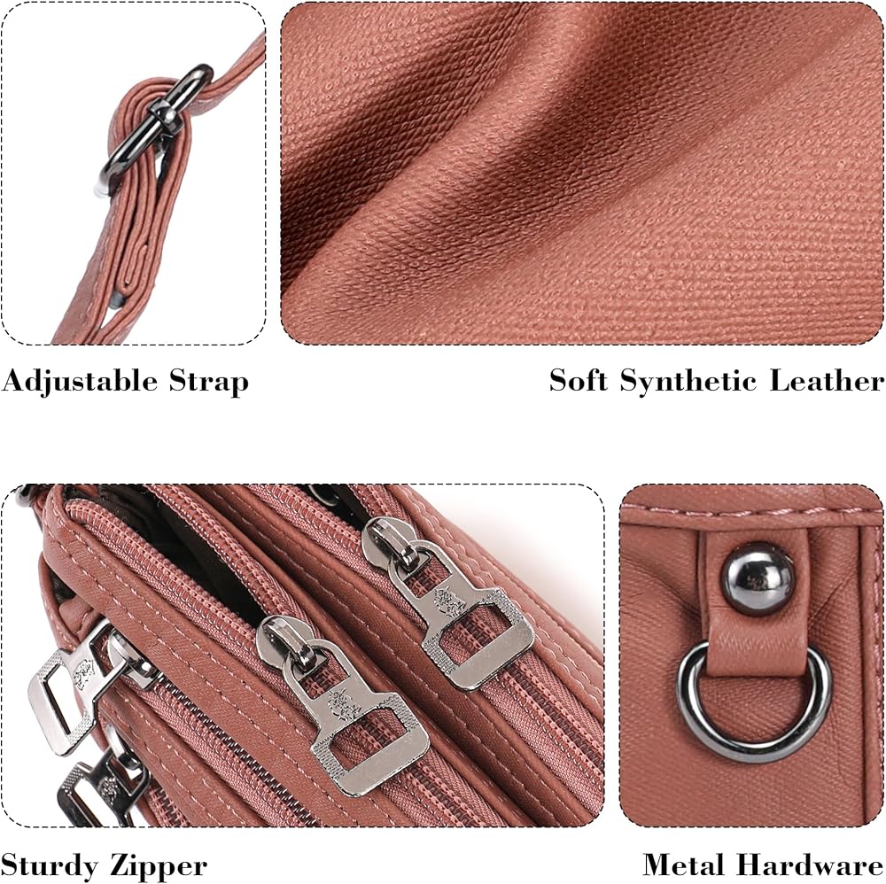 جيوب ثلاثية: حقيبة كروس صغيرة للسيدات تحتوي على جيوب ثلاثية وجيب خلفي بسحاب مناسب لتصنيف أغراضك، ويمكن أن تحمل المحفظة الصغيرة جواز السفر وبطاقات الائتمان والمفاتيح وأحمر الشفاه وسماعات الرأس والتذاكر والنقود وتصنيف أغراضك الصغيرة الشخصية .