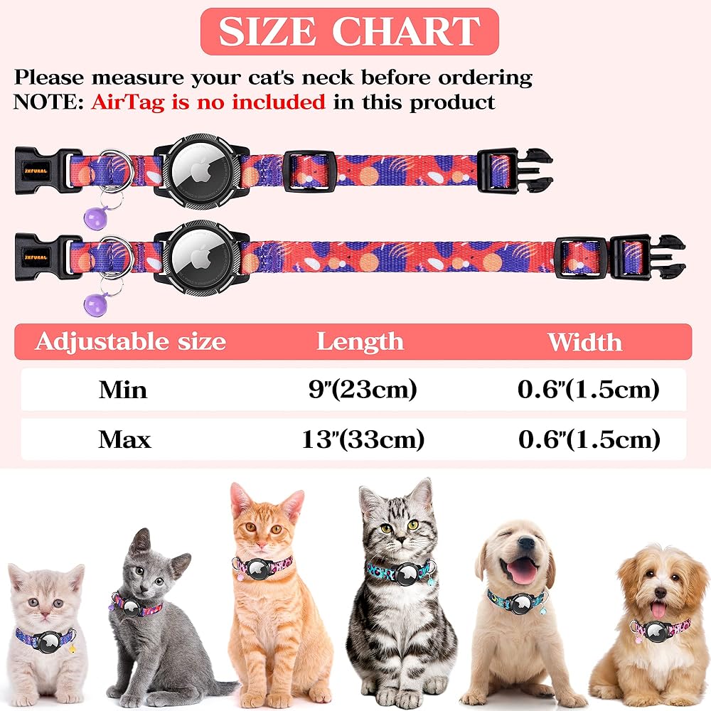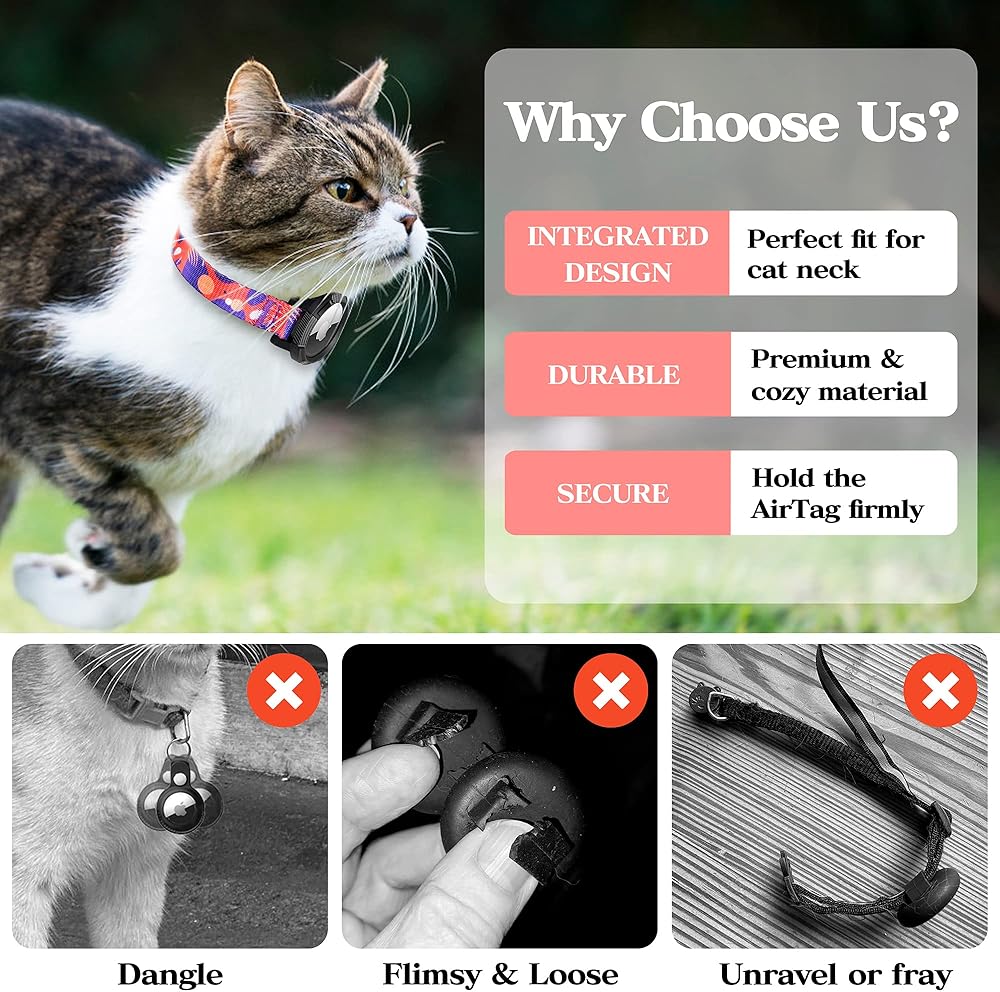 • 【مناسب تمامًا】يتناسب طوق القطط المتكامل هذا بشكل جيد مع رقبة القطط ويحمل بطاقة الهواء بشكل آمن. بالمقارنة مع طوق القطط AirTag المنفصل، فهو لا يهتز أو يتدلى أو يسقط. يمكن تعديل طول الطوق من 9 بوصة إلى 13 بوصة؛ يناسب معظم القطط، والكلاب الصغيرة.