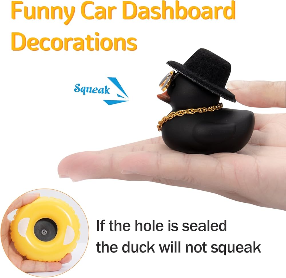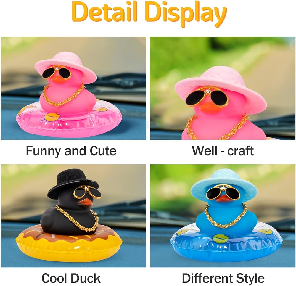 ديكورات البط المضحكة: تم تجهيز هذه البطة بلوحة القيادة بقبعة وقلادة ونظارات وحلقة سباحة وشريط على الوجهين، وهي بطة ملونة وفريدة ورائعة لتزيين سيارتنا.