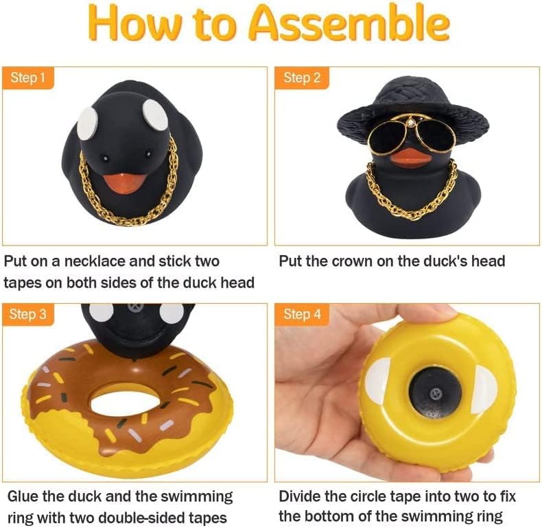 بطة DIY: تحتاج إلى التجميع، ووضع القبعة على رأس البطة، ووضع القلادة وتثبيت النظارات بشريط صغير، ووضع حلقة السباحة في الجزء السفلي من البطة ثم تثبيت البطة بشريط على الوجهين. إذا كانت لديك أي أسئلة، فلا تتردد في الاتصال بنا، وسوف نقوم بالرد عليك في غضون 24 ساعة.