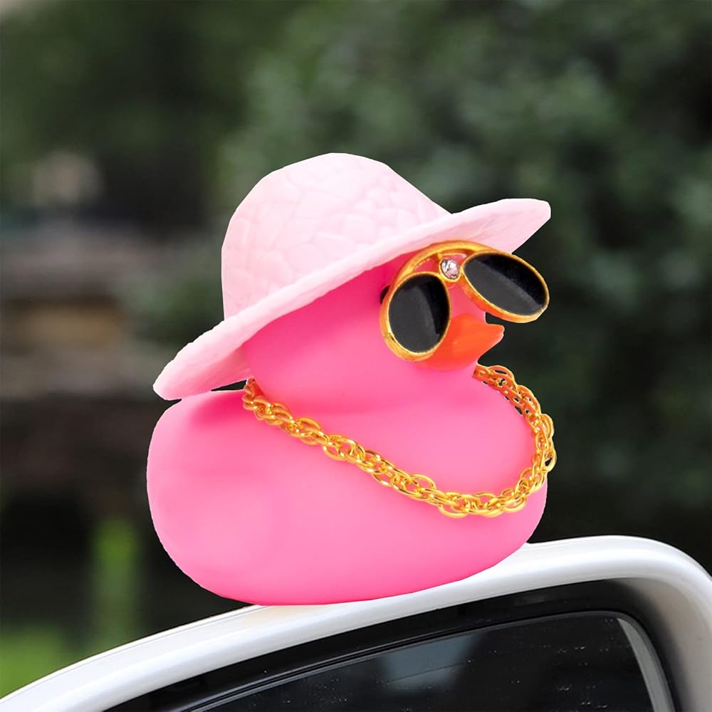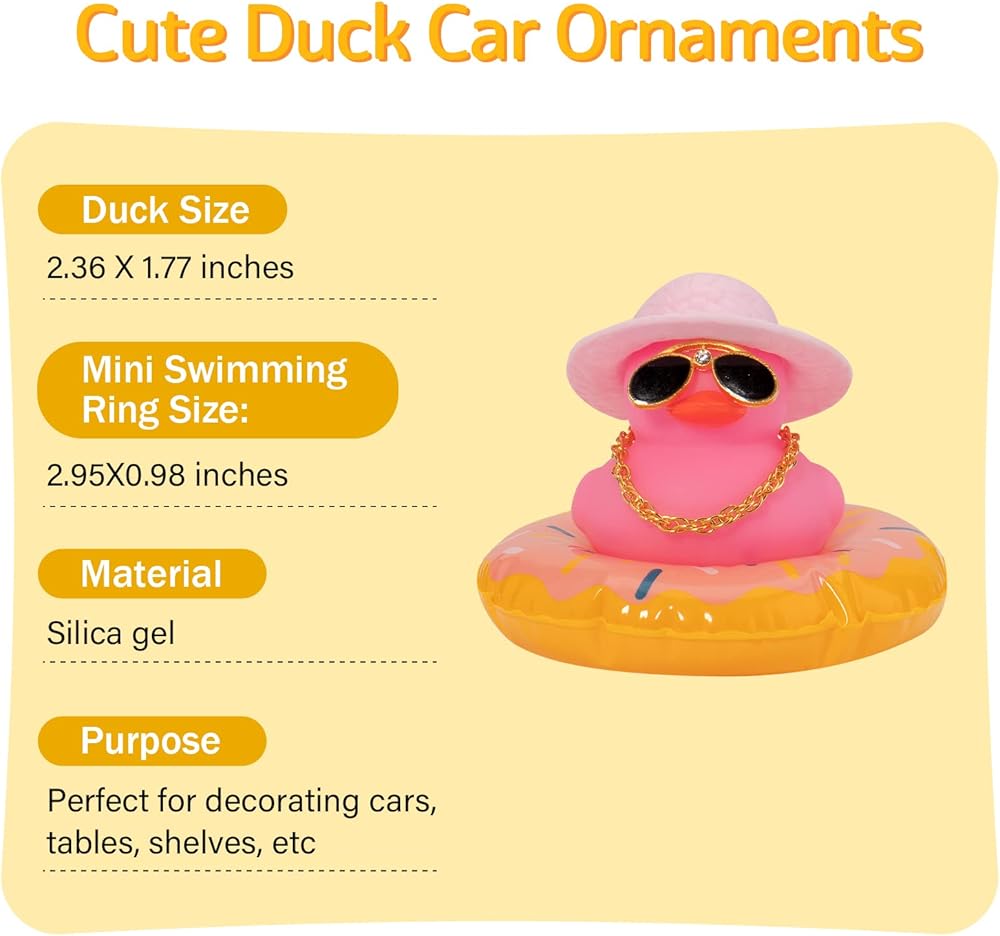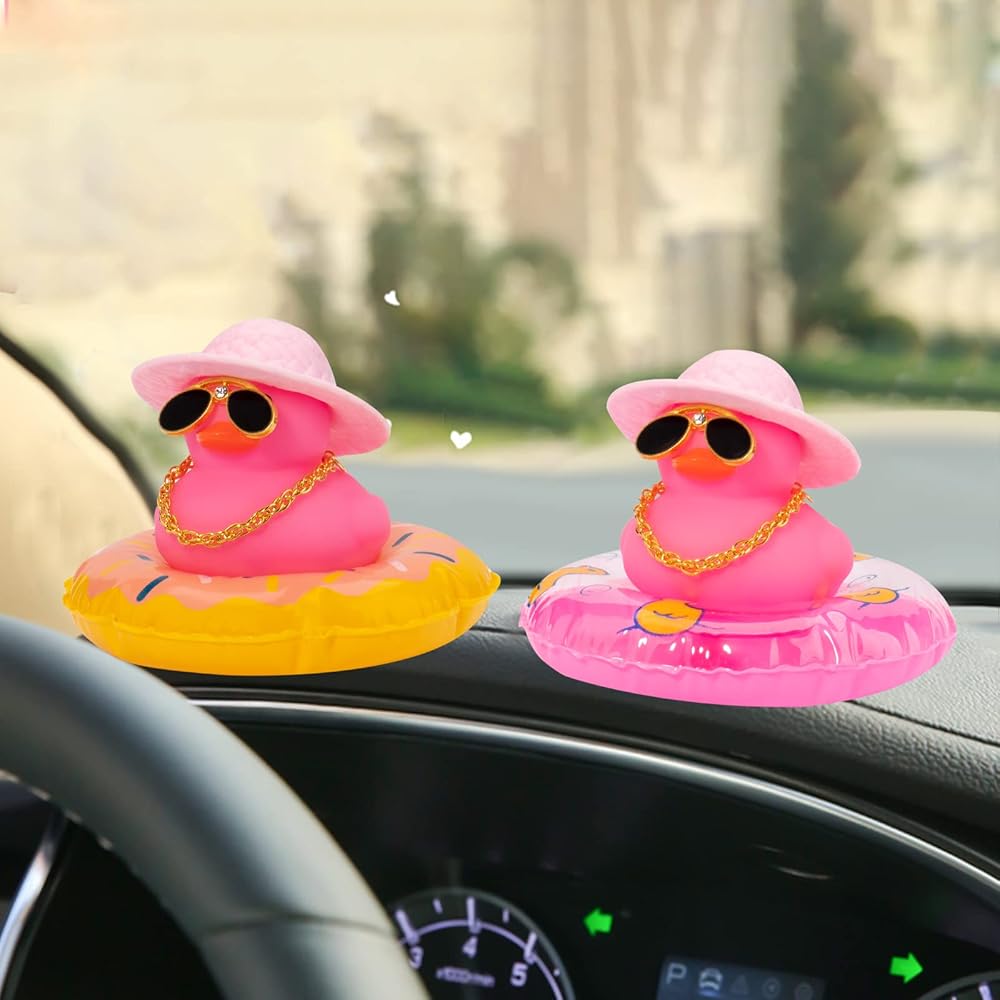 winuu سيارة بطة زخرفة لوحة القيادة الزينة سيارة بطة مطاطية لملحقات لوحة القيادة السيارة مع حلقة السباحة النظارات الشمسية قبعة وقلادة، A_Pink بطة وقبعة وردية ودونات