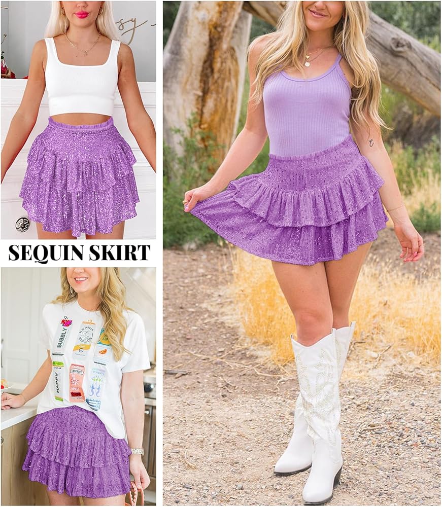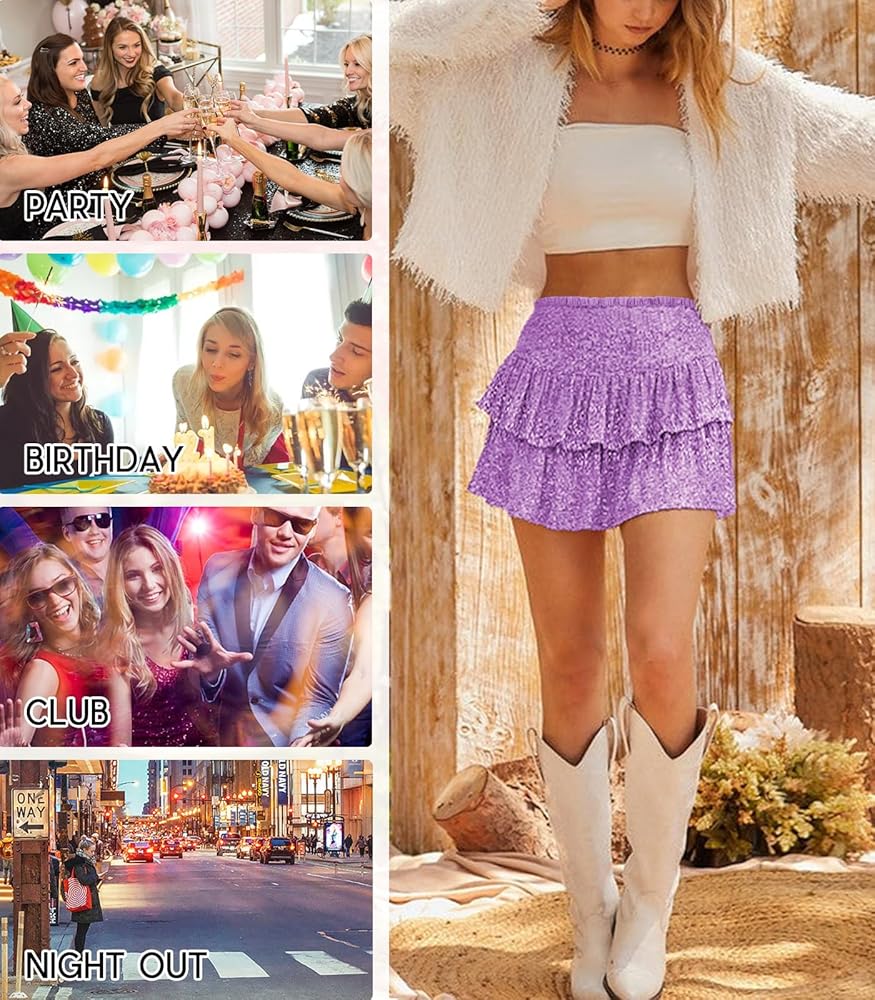 【المناسبات】تنورة نسائية صغيرة لامعة مثالية للحفلات والنوادي والحفلات وحفلات الكوكتيل وأعياد الميلاد والمواعدة والكرنفال والسهرات والسهرات والرقص والعروض والأنشطة والخروج والتسوق والكريسماس وما إلى ذلك. تنورة للفتيات، تنورة النادي بالترتر، تنانير قصيرة لامعة وجذابة.