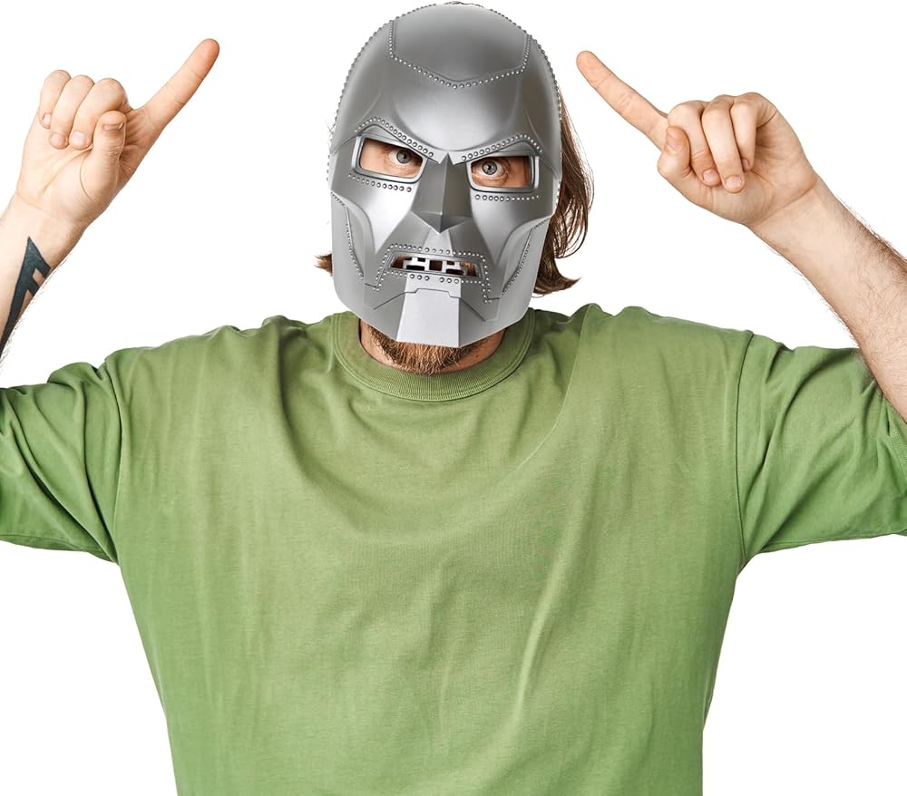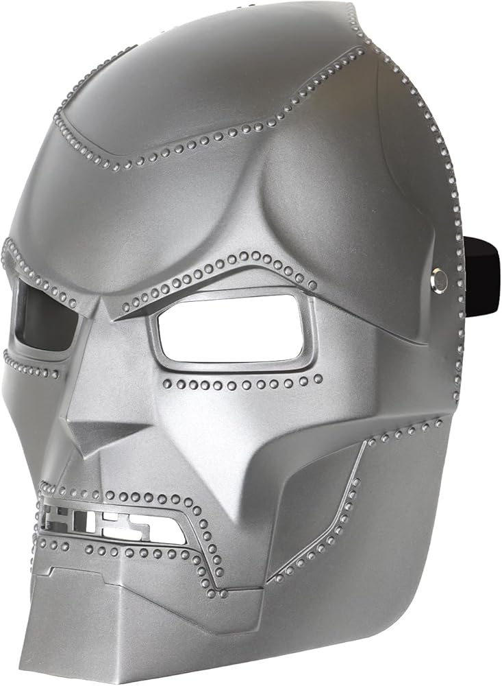 This full face mask is inspired by the super villain hero Dr Victor,the fascinating character who masters magic and technology,the silver resin mask adds a lot of mystery to him,if you are looking for exciting adventures film hero roles play,there's no doubt that this is a must-have costume prop!