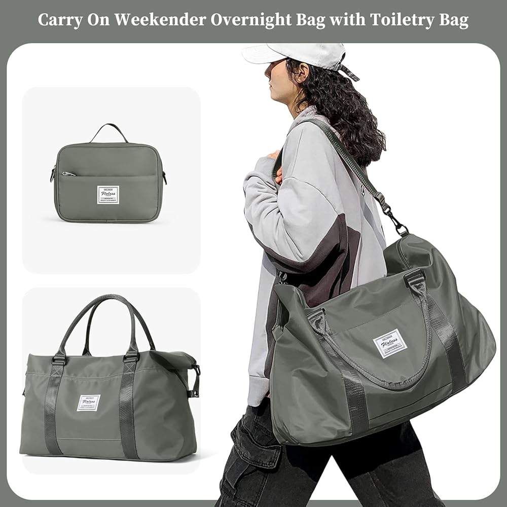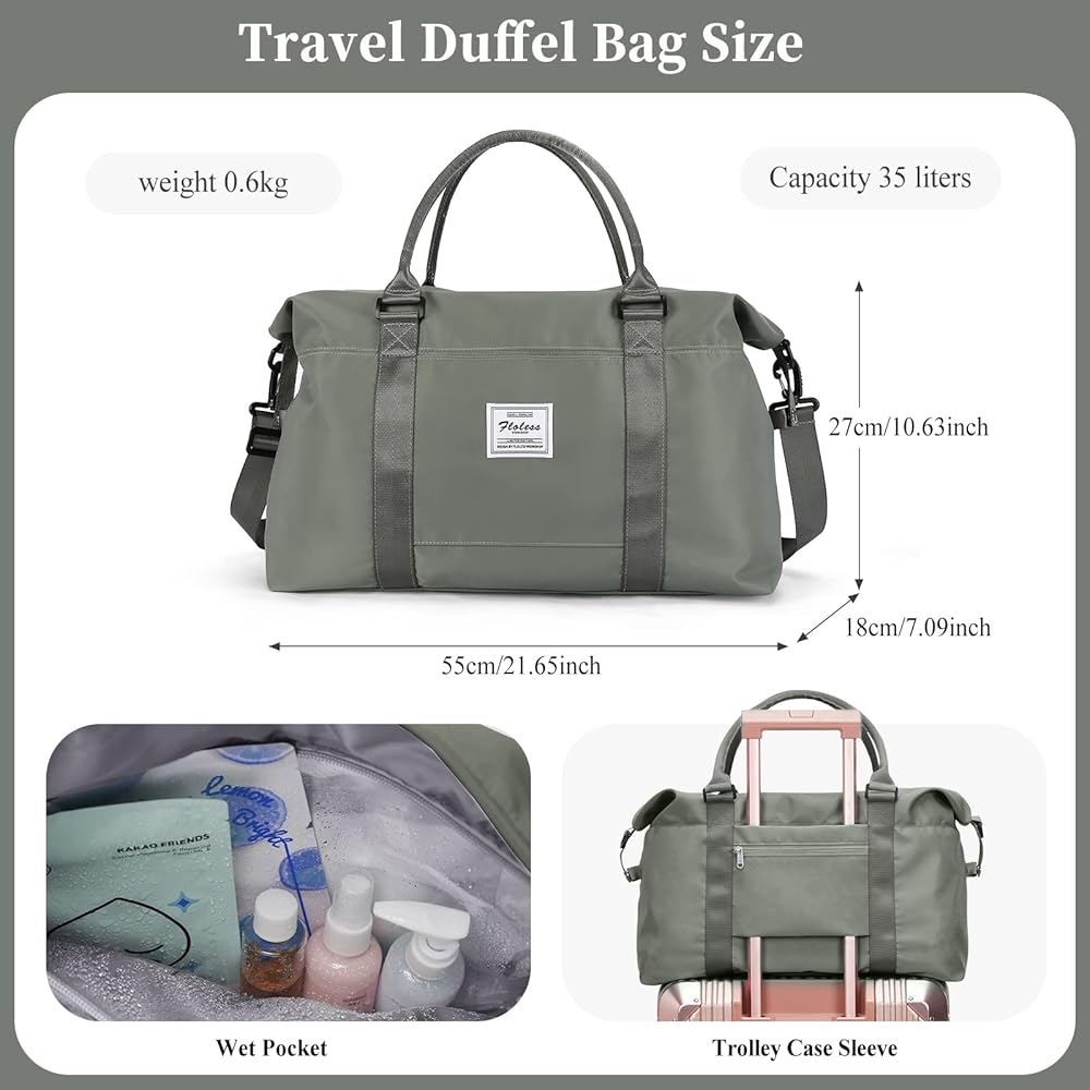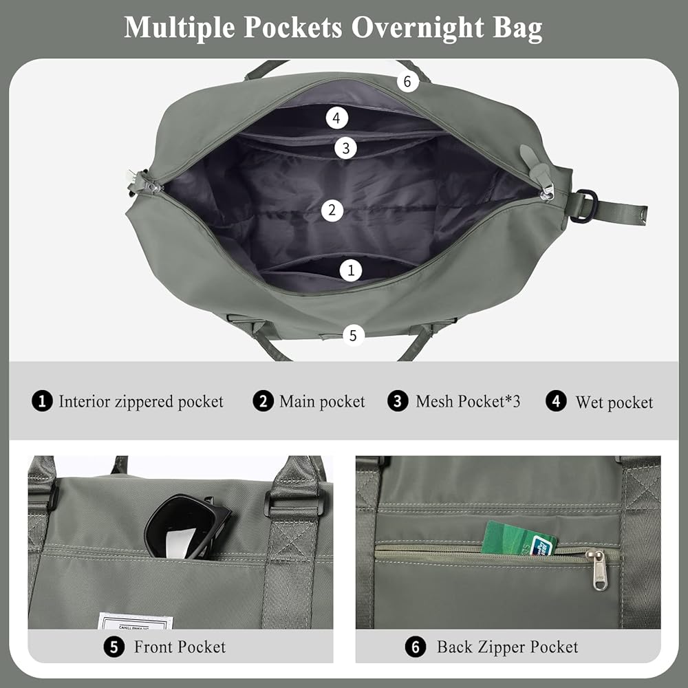 【Duffel Bag with Wet Pocket】This travel duffle bag for women comes with a wet compartment that way you can separate items in your bag. For example you go to the beach and want to change but your clothes are wet and you don't want to get everything else wet. Also if you have travel size toiletries that you are worried about leaking.There is even a small wet bag inside the toiletry bag.