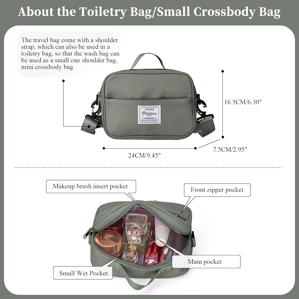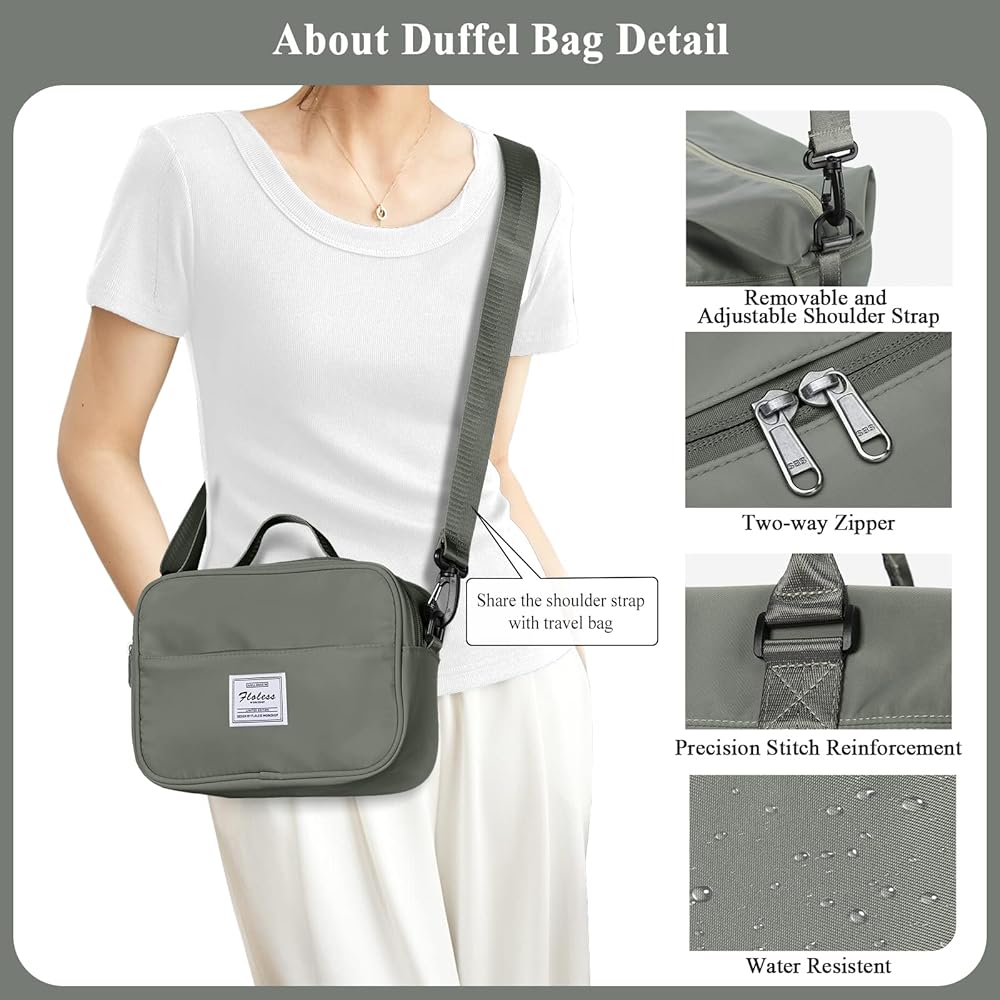 【Airplane Friendly】There is a luggage strap on the back side of this travel duffel bag, it would connect to you rolling suitcases handle. Free your hands and travel easily.The toiletry bag is used with a shoulder strap, it can be used as your small crossbody bag or passport bag to hold your phone,passports or frequently used small items.