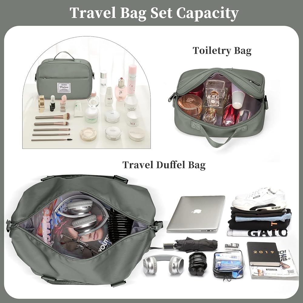 【Large & Multiple Pockets Travel Bag Set】The Travel set is designed with large capacity and multiple pockets.Travel Bag has 8 pockets and 35 Liters capacity to hold you needed as a personal item to travel with and more. The toiletry bag can put your skin care products, cosmetics and small items.
