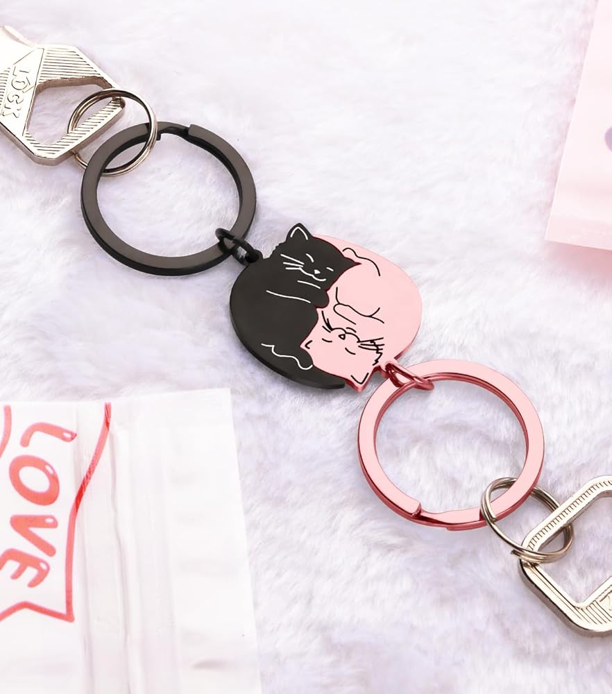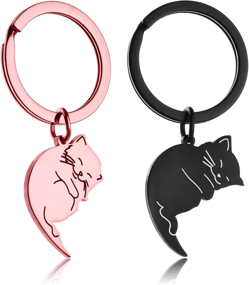• Unique and stylish design with cute cat, is the ideal couple gift for boyfriend and girlfriend; This cute cat symbolizes your sweet and eternal relationship and brings you closer to each other. A pair of cat keychains makes people happy; Lovely keychain, as a gift for missing you, is a sweet gift for lovers, a lovely anniversary gift for lovers, a birthday gift for boyfriends, a birthday gift for girlfriends, Stocking Stuffers!