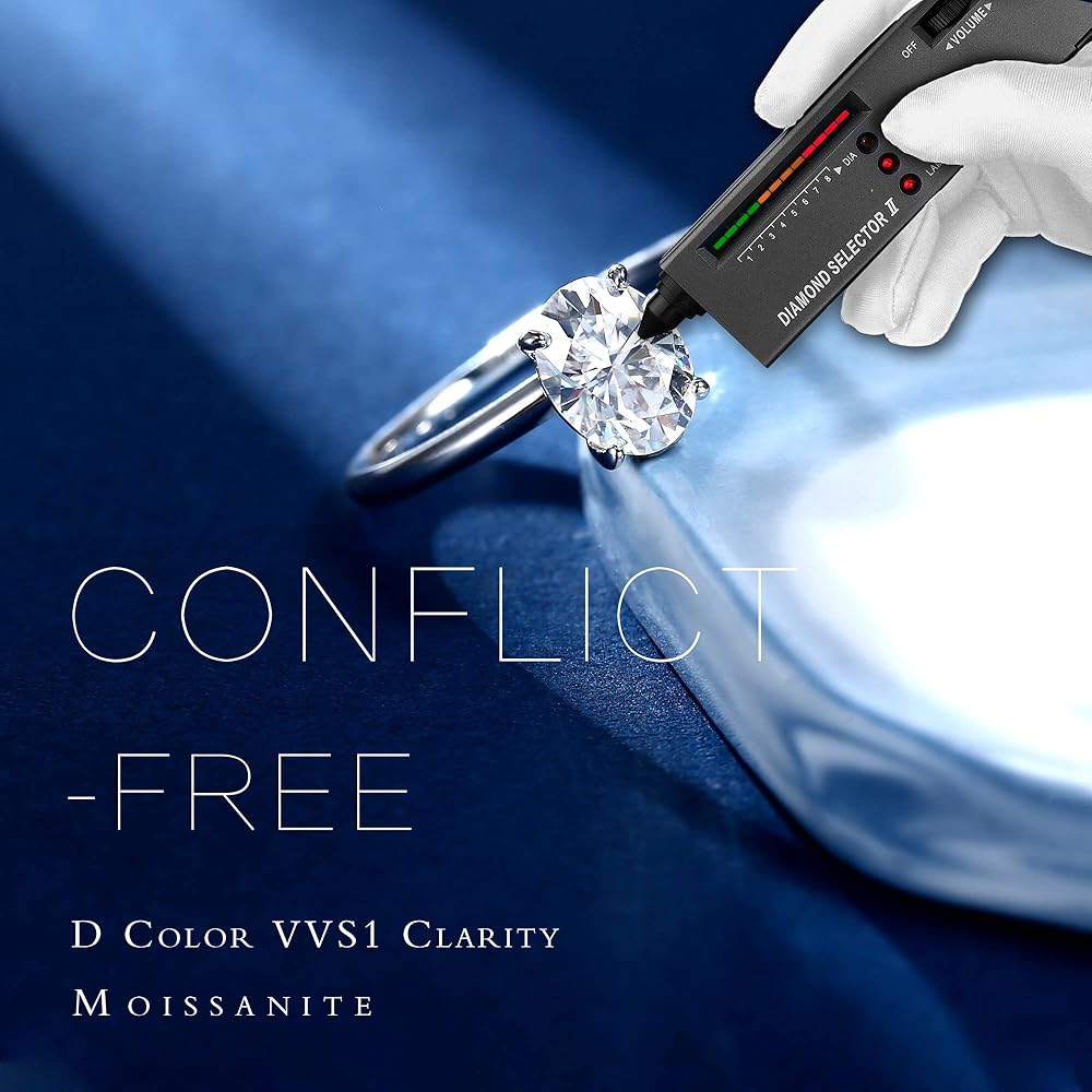 المويسانتي: المويسانتي ليس بديلاً عن الألماس، ولكنه حجر كريم أجمل من الألماس. عندما تنظر إلى الماس، ستلاحظ التألق (ومضات بيضاء) والنار (ومضات ملونة). يُظهر المويسانتي أيضًا كلا الأمرين، ولكن عادةً ما يحتوي على نار أكثر من الماس. لذلك، يميل المويسانتي إلى الحصول على ومضات ملونة من الضوء أكثر من الماس.