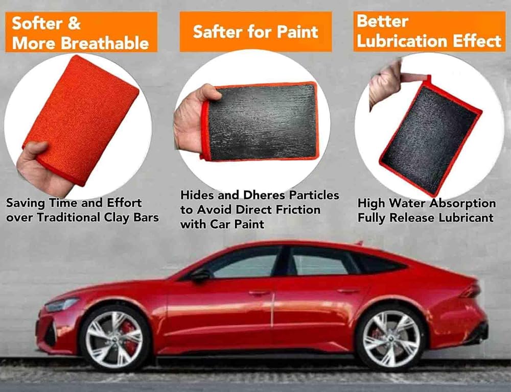 【متين وموثوق: قفاز الطين الخاص بنا متين وقابل لإعادة الاستخدام، وقابل للغسل ويلامس أي ركن من سطح الطلاء والزجاج والبلاستيك والفولاذ. يمكنك إعادة استخدام منشفة إعداد السطح بعد الغسيل. قفاز الطين الخاص بنا لتفاصيل السيارة يمكن شطفه بعد رفعه. الملوثات والأوساخ والجسيمات. حتى بعد سقوطها على الأرض، يمكن استخدامها مرة أخرى بعد تنظيف بسيط.