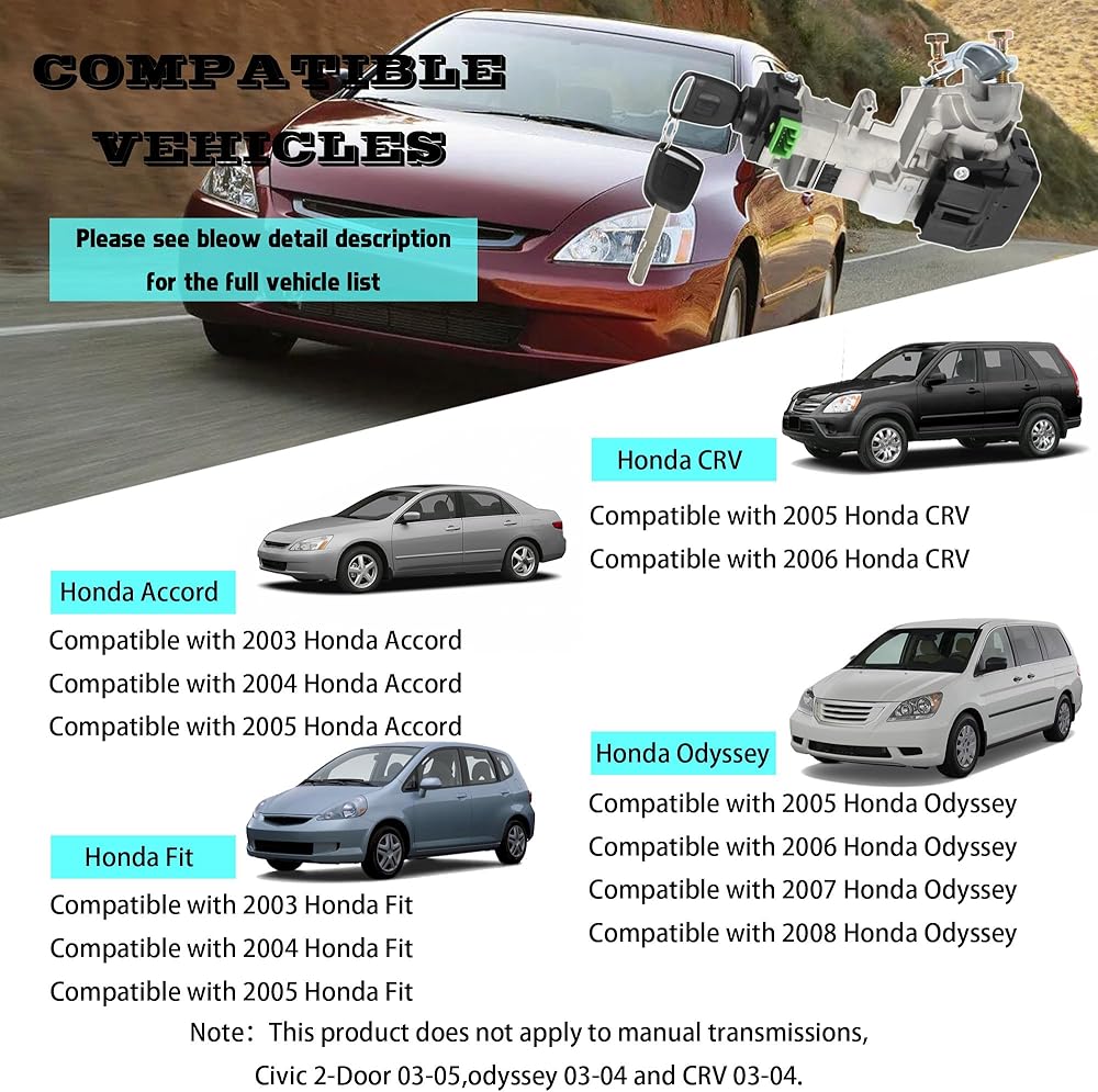 مفتاح الإشعال قفل اسطوانة الجمعية معرف 48 رقاقة مع 2 مفاتيح متوافقة مع 2003-2008 هوندا أكورد صالح CRV أوديسي 48 رقاقة يستبدل 06350-SAA-G30 35100-SDA-A71
