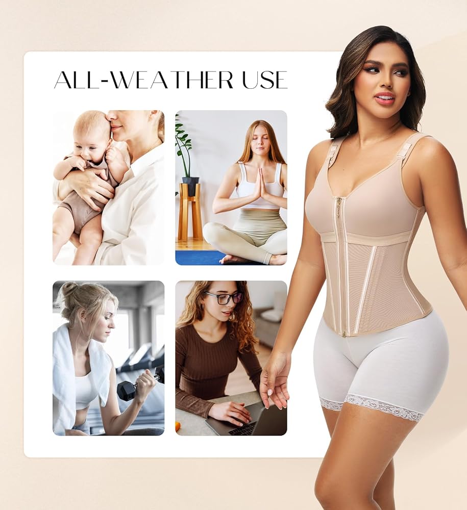 حزام خصر قابل للتعديل متعدد الوظائف: جهاز تشكيل الجسم هذا للنساء مزود بحزام كتف قابل للتعديل، إلى جانب 4 صفوف من أبازيم التعليق والسحابات الدقيقة، مما يسمح لك بتعديله حسب الرغبة لاستخدامات مختلفة. وفي الوقت نفسه، يمكن أن يساعدك على إكمال شكل الجزء العلوي من جسمك، وشد جسمك وخلق شخصية جميلة