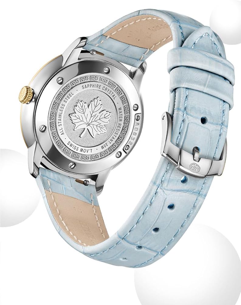 ساعات أنيقة للنساء، مينا من عرق اللؤلؤ وحركة كوارتز سويسرية للسيدات مع حزام جلدي - سلسلة كلاود
