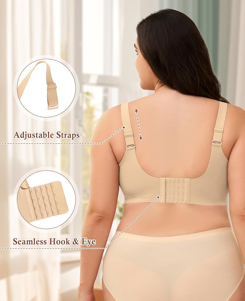 حمالة الصدر اليومية هذه بتصميم ذو 4 صفوف من الخطاف والعين، يمكنك تعديلها وفقًا لاحتياجاتك، ووسادة إسفنجية ناعمة تحمي صدرك، وتمنحك تجربة أكثر راحة.
