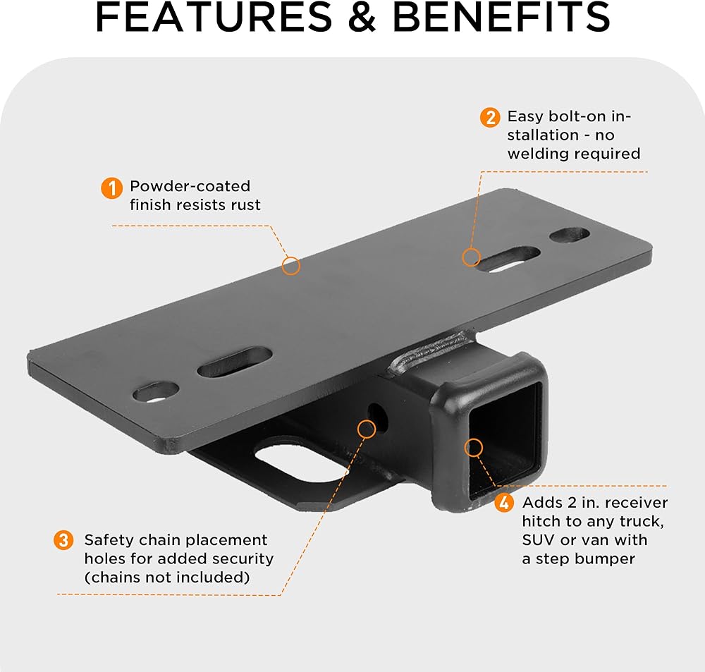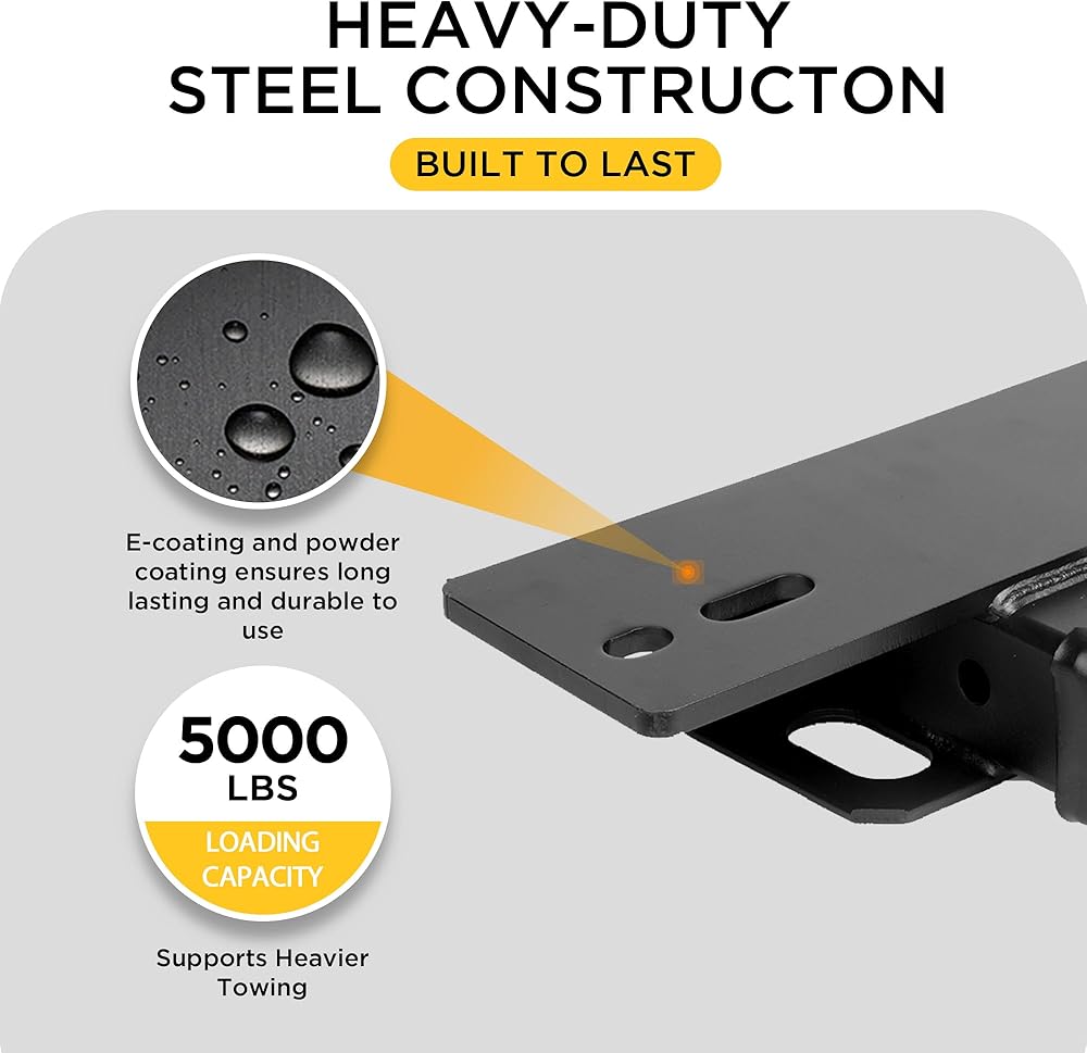سعة تحميل شديدة التحمل: مصمم لدعم ما يصل إلى 5000 رطل، جهاز استقبال ممتص الصدمات هذا مثالي لمهام السحب الخفيفة، مما يساعدك على نقل المقطورات والدراجات والمزيد بسهولة.