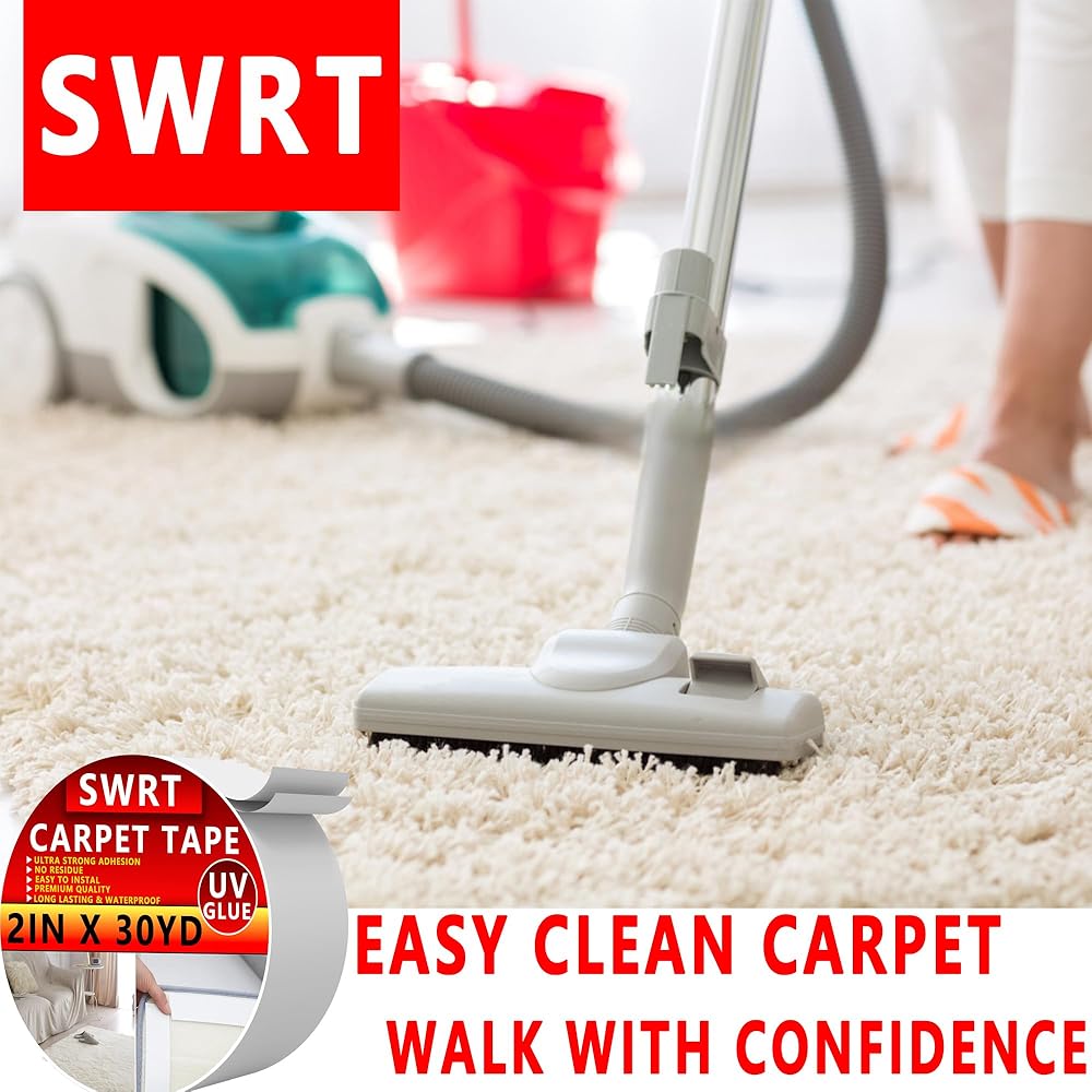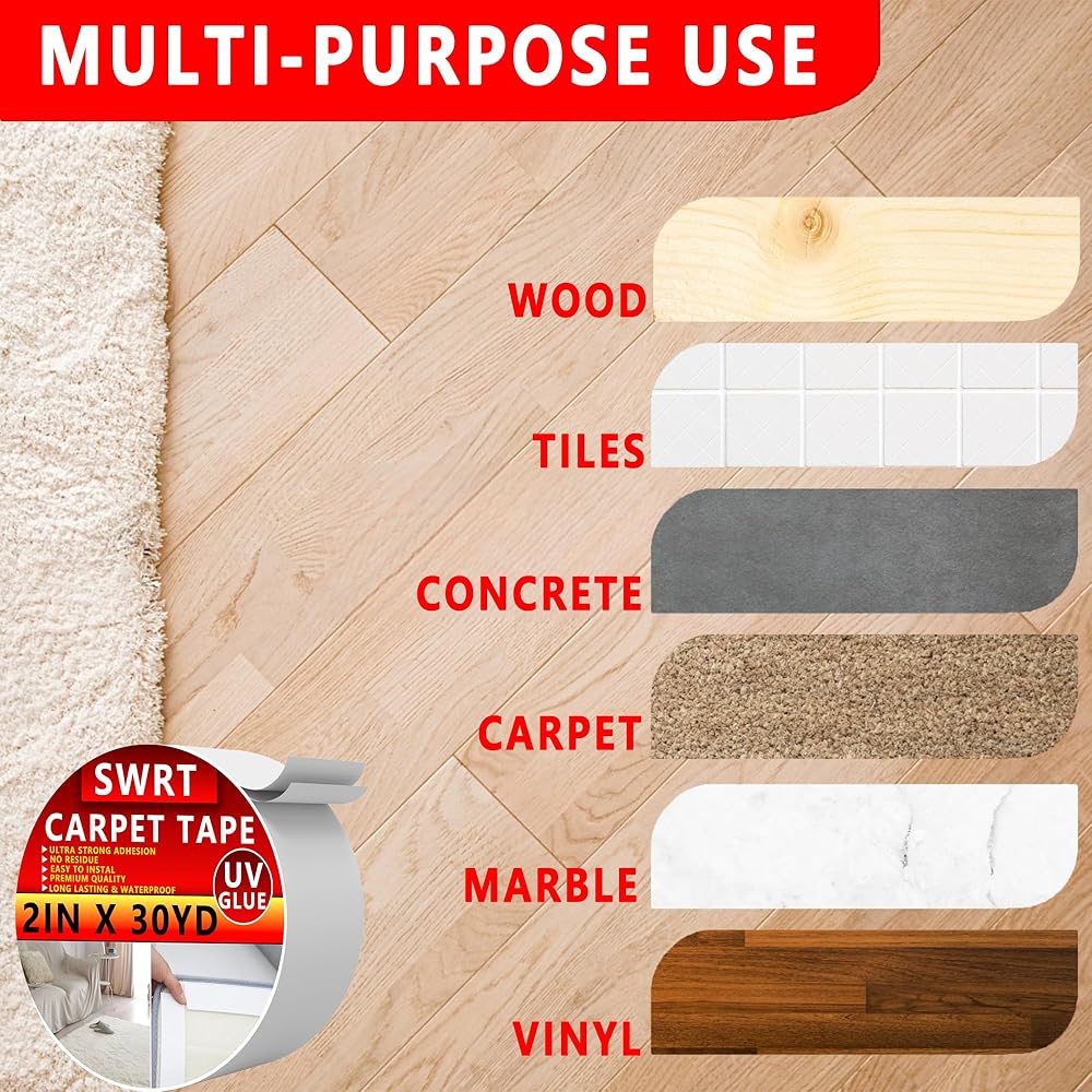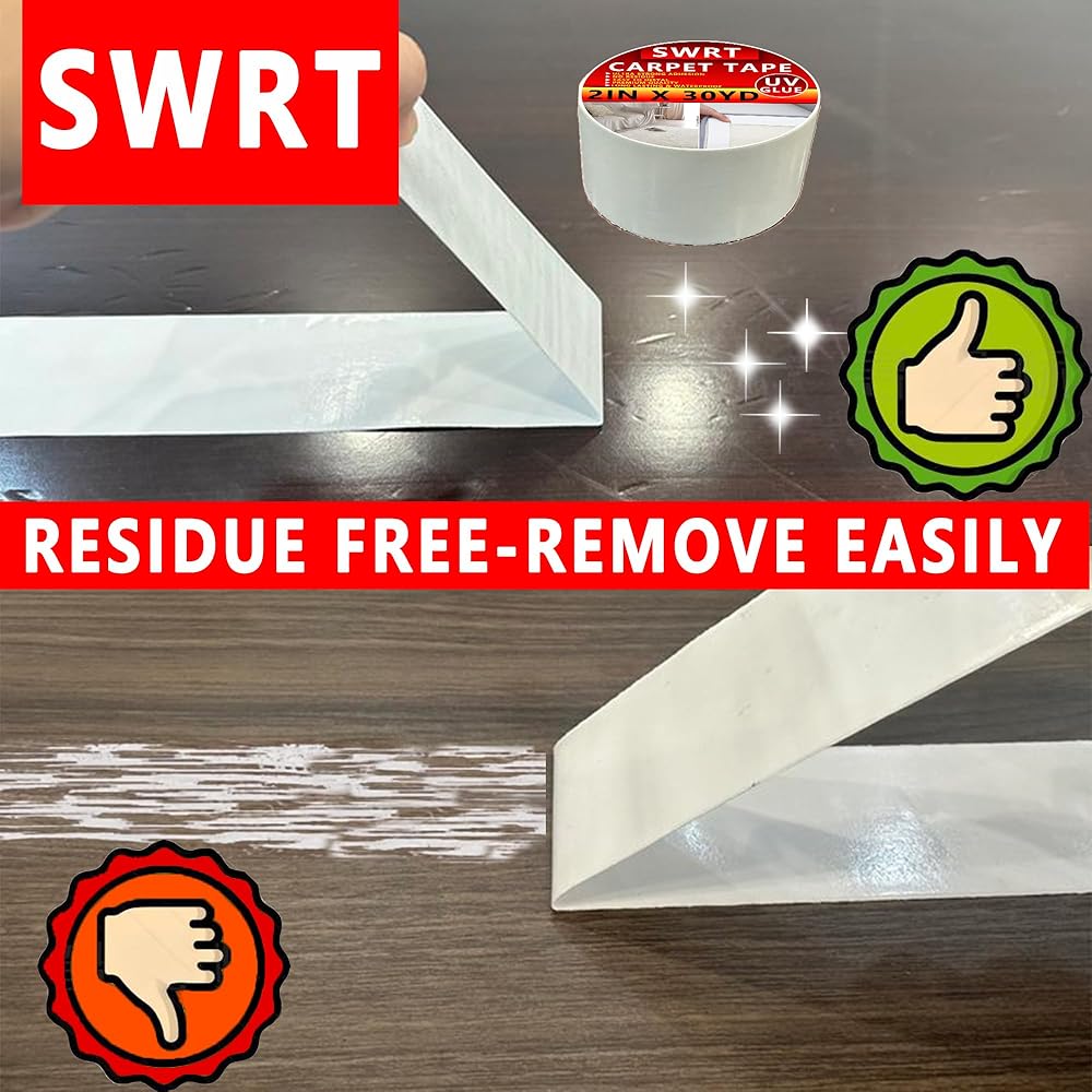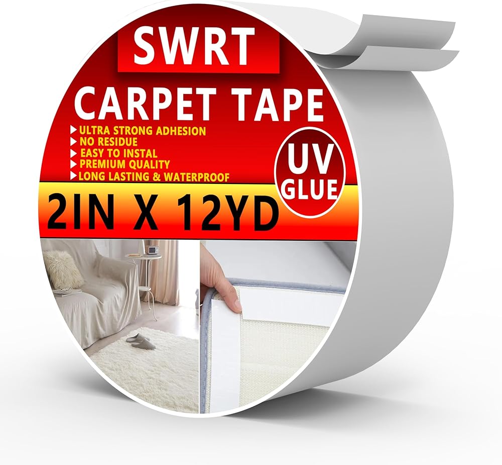 شريط سجاد SWRT بطول 2 بوصة / 12 ياردة مزدوج الجوانب، مقبض شريط سجاد للسجاد، غراء للأشعة فوق البنفسجية أكثر قوة ولا يترك بقايا شريط سجاد عالي التحمل لسجاد المنطقة والأرضيات الصلبة والبلاط والرخام والمزيد
