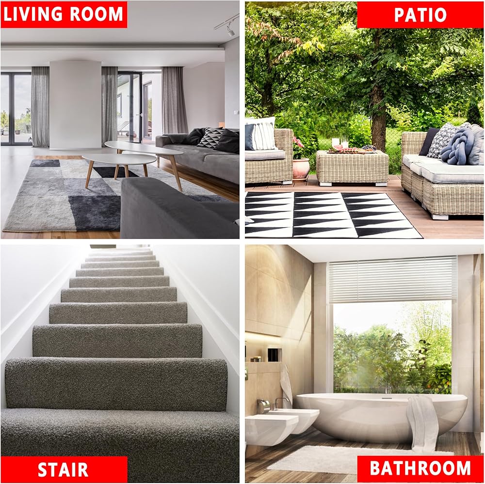 【Multi-Purpose Use】This carpet tape for area rugs is suitable for a wide range of applications. The double sided tape heavy duty is suitable for tiles, vinyl, concrete, wood and any other outdoor textures, rough surfaces, smooth surfaces, and carpet surfaces. You can also use the rug tape for carpet on gym mats to meet your daily use needs.