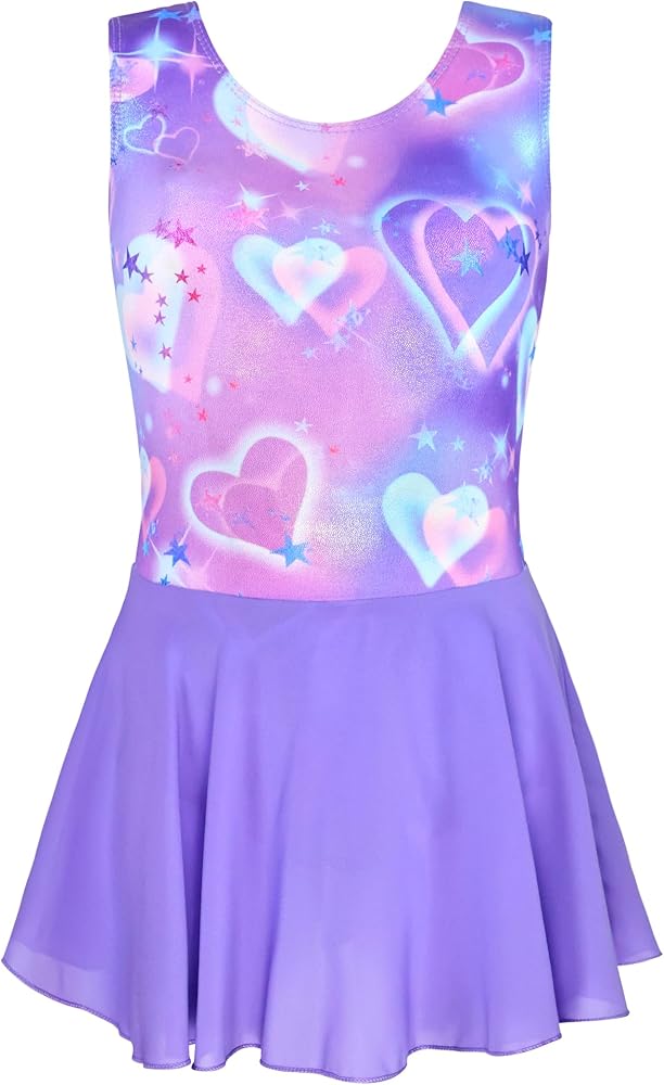 مجموعة من ثياب الرقص للفتيات ذات القلب الأرجواني والوردي مقاس 4t 5t