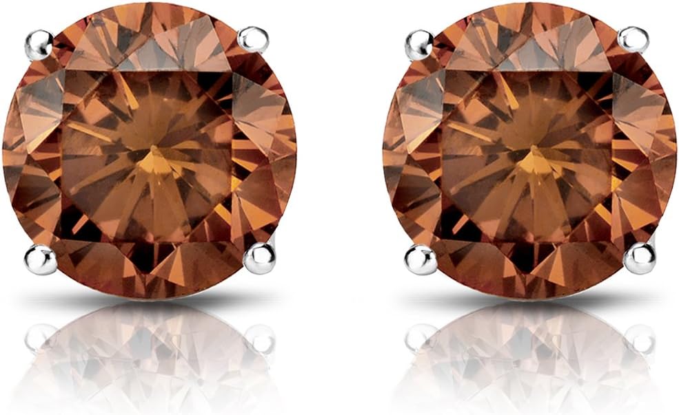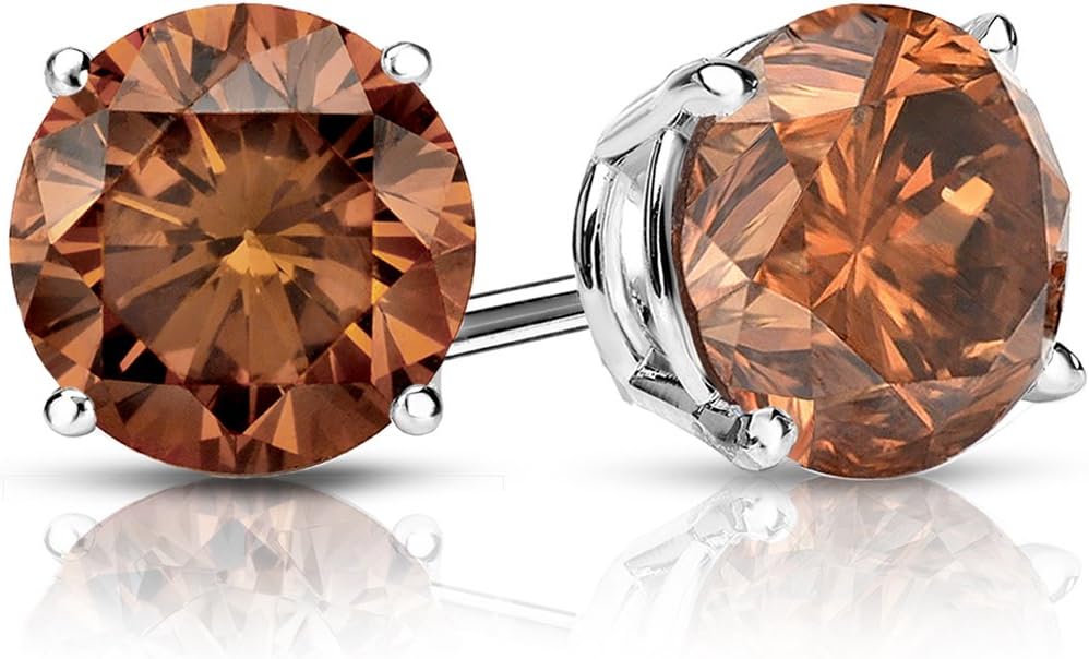4-Prong Basket-set brown round diamond stud earrings creates a stylish statement in men's collection. These 14k white gold stud earrings sparkle with a total weight of 1/4-2 ct. and are available with screw-back clasps.