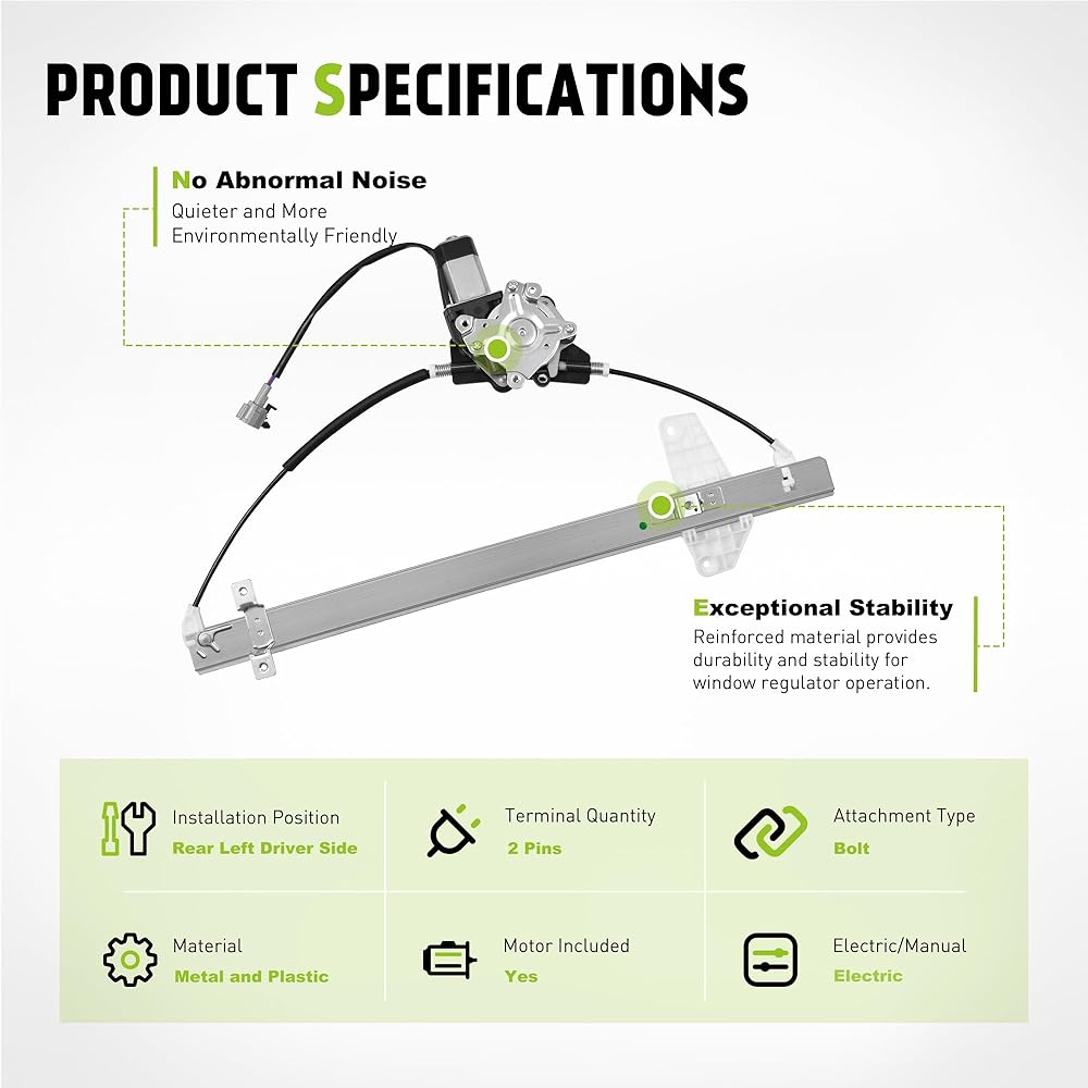 نماذج المركبات: منظم النافذة الخلفي جانب السائق مناسب لنيسان 2004-2015 Titan Crew/كابينة ممتدة، 2005-2015 Armada Sport Utility، 2004 Pathfinder Armada Sport Utility. قبل أن تشتري منظم نافذة الباب الجانبي للسائق، تأكد من أن سيارتك متطابقة