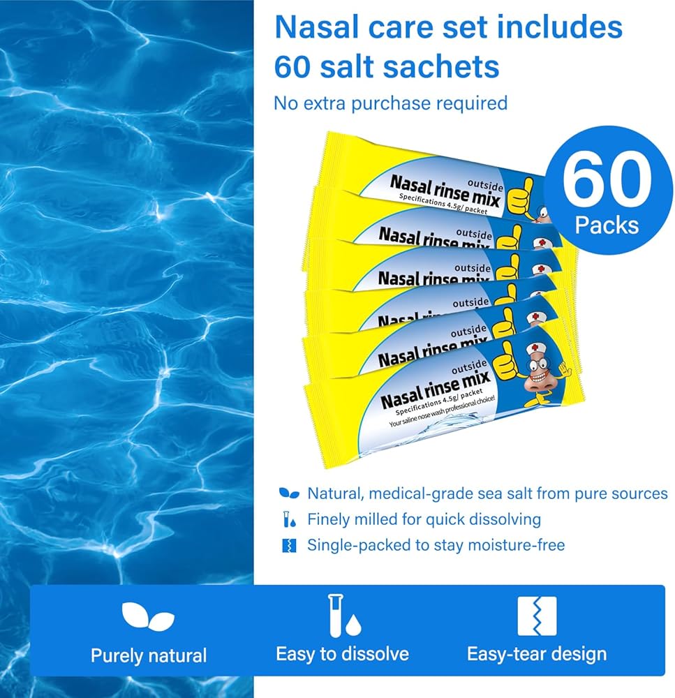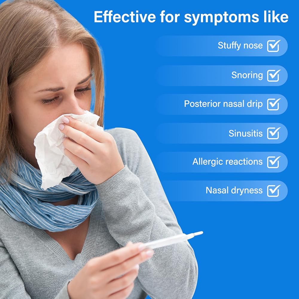 تنفس بشكل أفضل - تقوم زجاجة شطف الجيوب الأنفية هذه بعمل رائع في تنظيف أنفك. يساعدك على التنفس بشكل أفضل، استمر في الاستخدام كل يوم. شطف الجيوب الأنفية يمنح المستخدمين الراحة من أعراض الأنف المختلفة، مثل سيلان الأنف أو التنقيط بعد الأنف. مناسب لمن يعانون من الحساسية ومشاكل الجيوب الأنفية الأخرى.