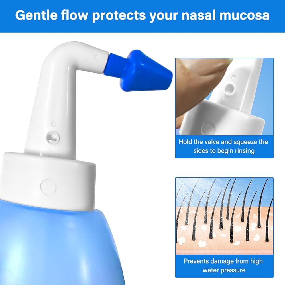 تصميم احترافي - تم تصميم زجاجة غسول الأنف وفقًا للبنية الفسيولوجية الداخلية لتجويف الأنف البشري، وتنظيف الممرات الأنفية والجيوب الأنفية، وطرد المخاط والمواد المهيجة المختلفة. للحساسية ونزلات البرد: نظف الغشاء المخاطي للأنف. إذا كنت تعاني من حساسية تجاه حبوب اللقاح، قم بطرد أي شوائب أو حبوب لقاح أو أي مهيجات أخرى من جيوبك الأنفية.