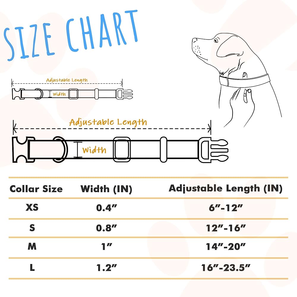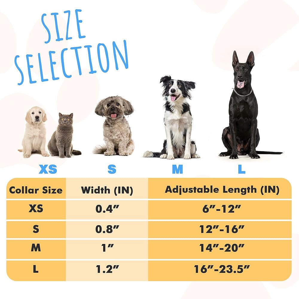 【طوق جرو قابل للتعديل الحجم】: نقدم أطواق للكلاب بأربعة أحجام، مناسبة للكلاب الكبيرة والمتوسطة والصغيرة. يمكن للإبزيم المعدني المضاد للانزلاق تعديل حجم الطوق بسهولة ليتناسب مع الكلاب في مراحل النمو المختلفة.