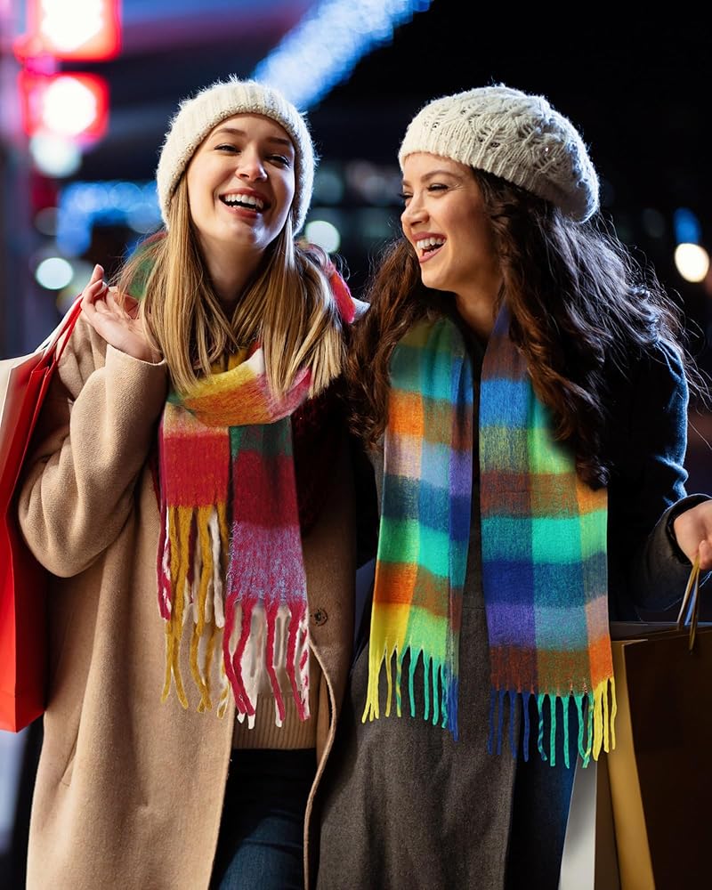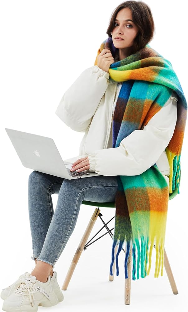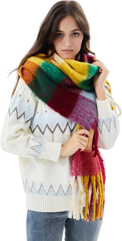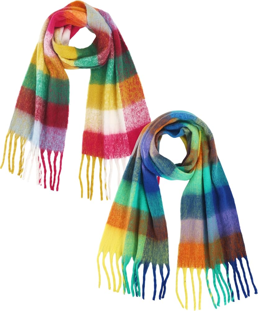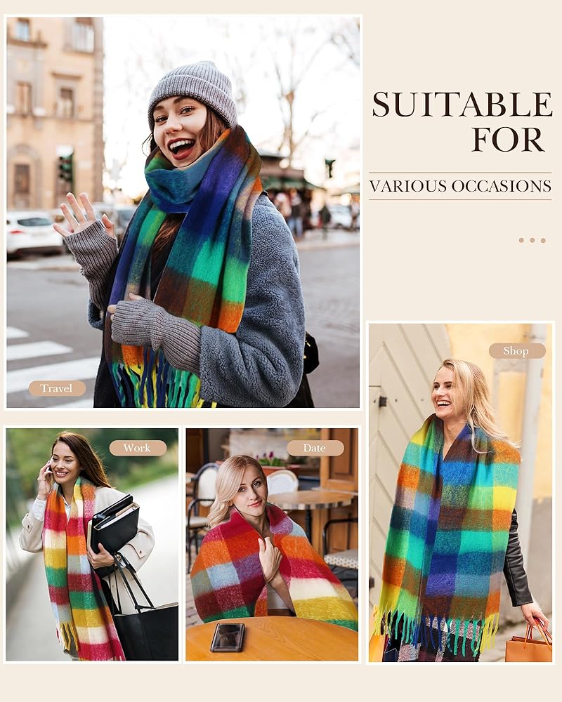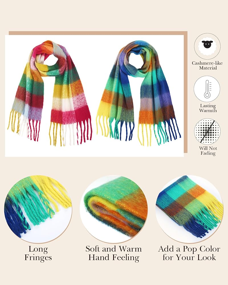 • Quality Material: the colorful plaid scarf is made of quality polyester fiber; It is skin friendly, comfortable and lightweight; It feels soft and cashmere like; Each weighs about 285g; It can keep you warm in autumn and winter; The women's thick winter scarf is decorated with tassels, making you look more elegant and refined in the crowd, giving you a good wearing experience