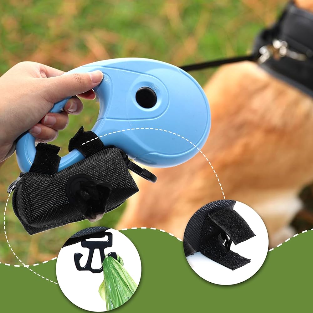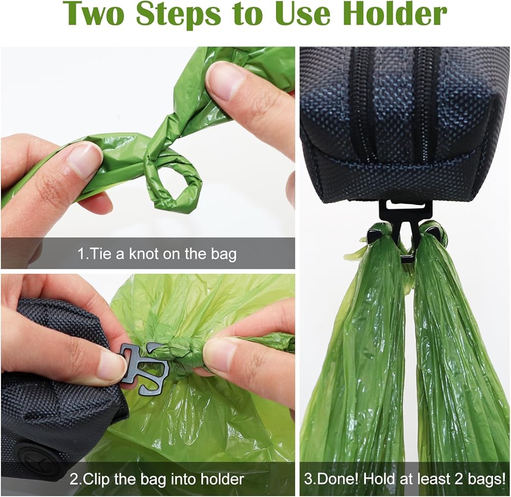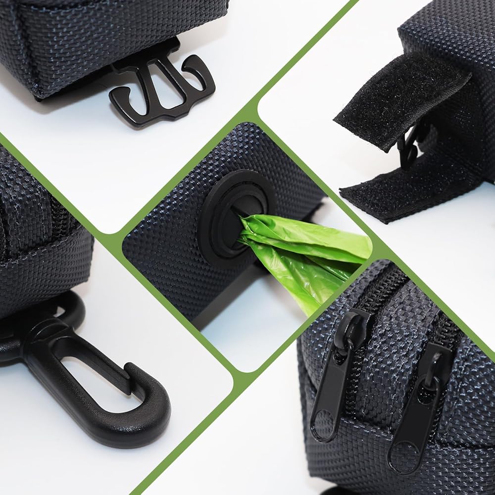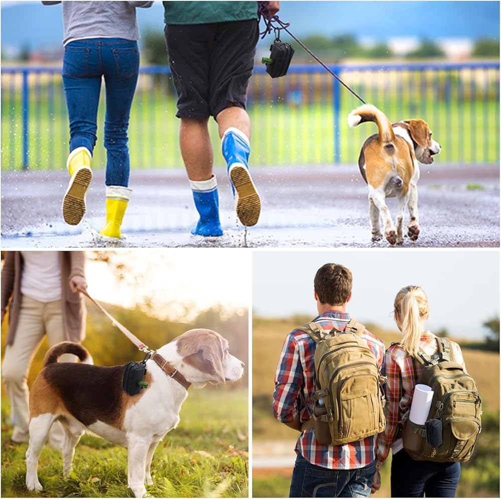 【Easily Attach to Leash】- There are dual connection methods used, one is to use sturdy hook and loop fasteners to connect to any belt.Another method is to secure the dog bag with a clip to ensure it does not slip off your belt. It can also be attached to the dog's collar or harness, or the bag dispenser can be clipped onto the backpack or even your waistband. Perfect for hiking, walking, and running.