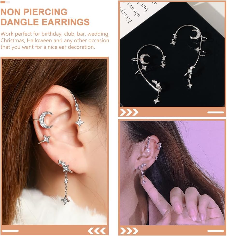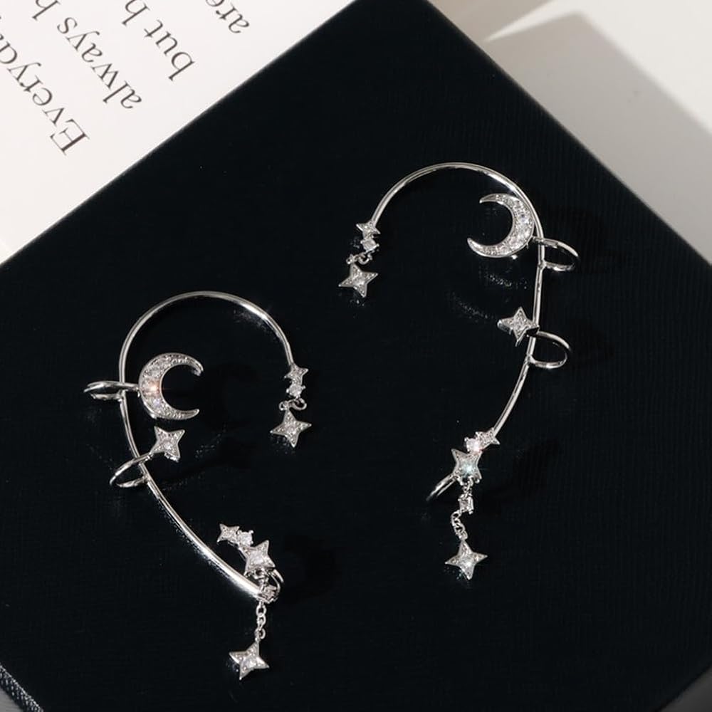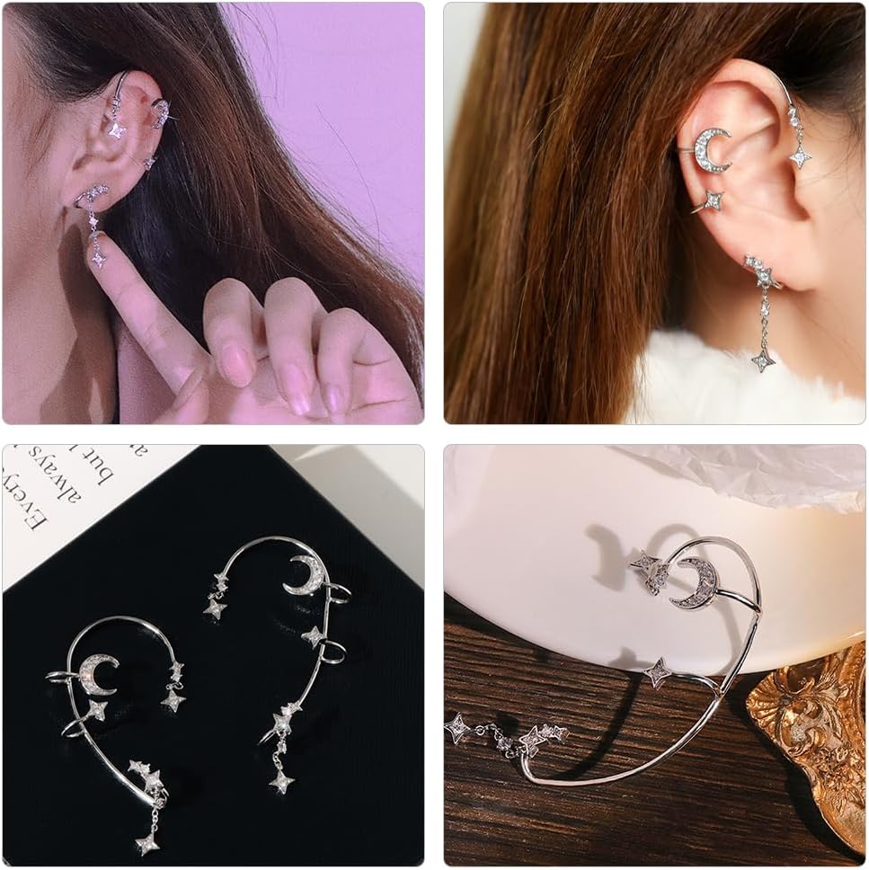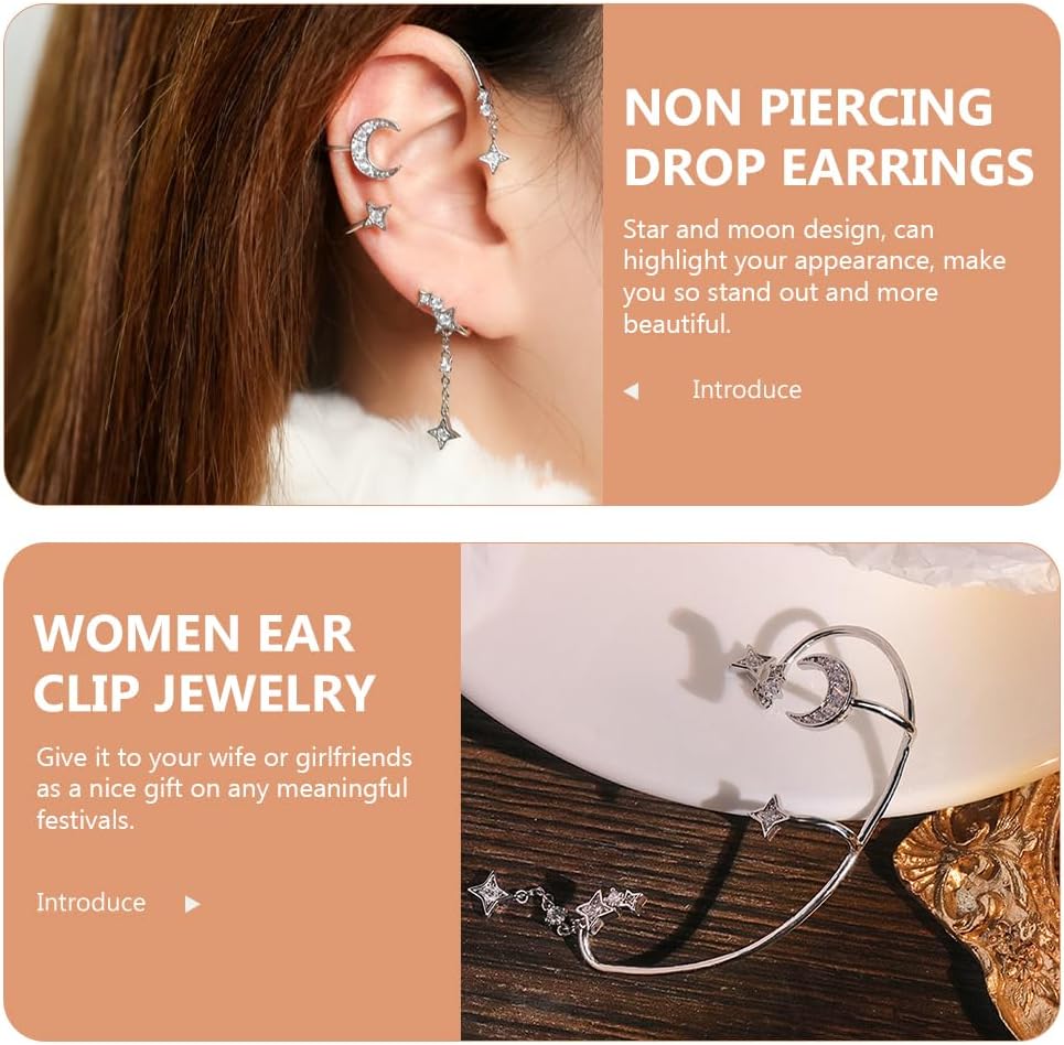 ⭐⭐مجوهرات الأذن بتصميم النجوم والقمر غير المثقوبة، يمكن أن تبرز مظهرك، وتجعلك مميزًا وأكثر جمالاً.