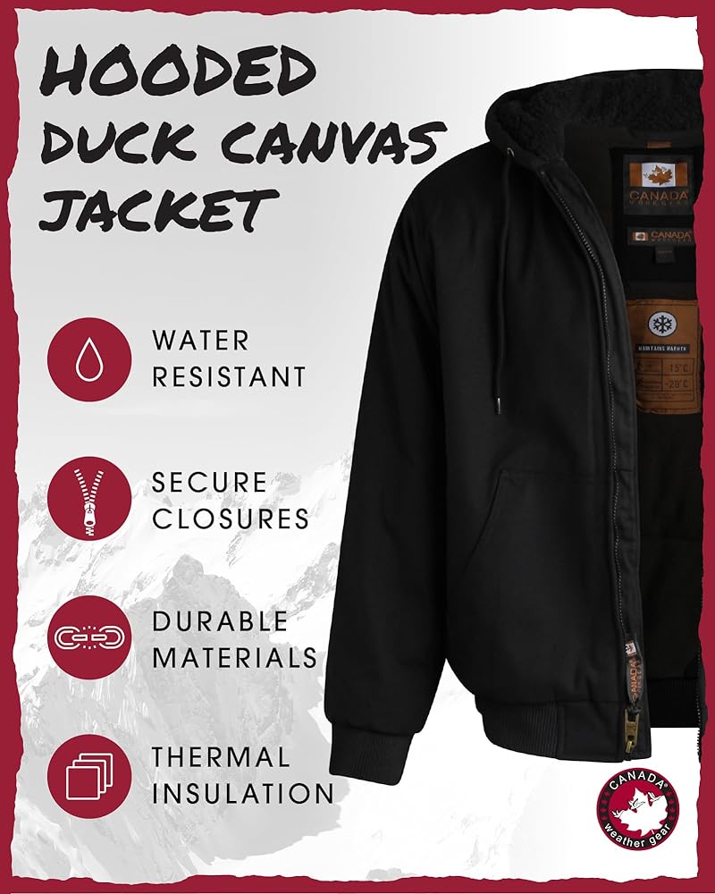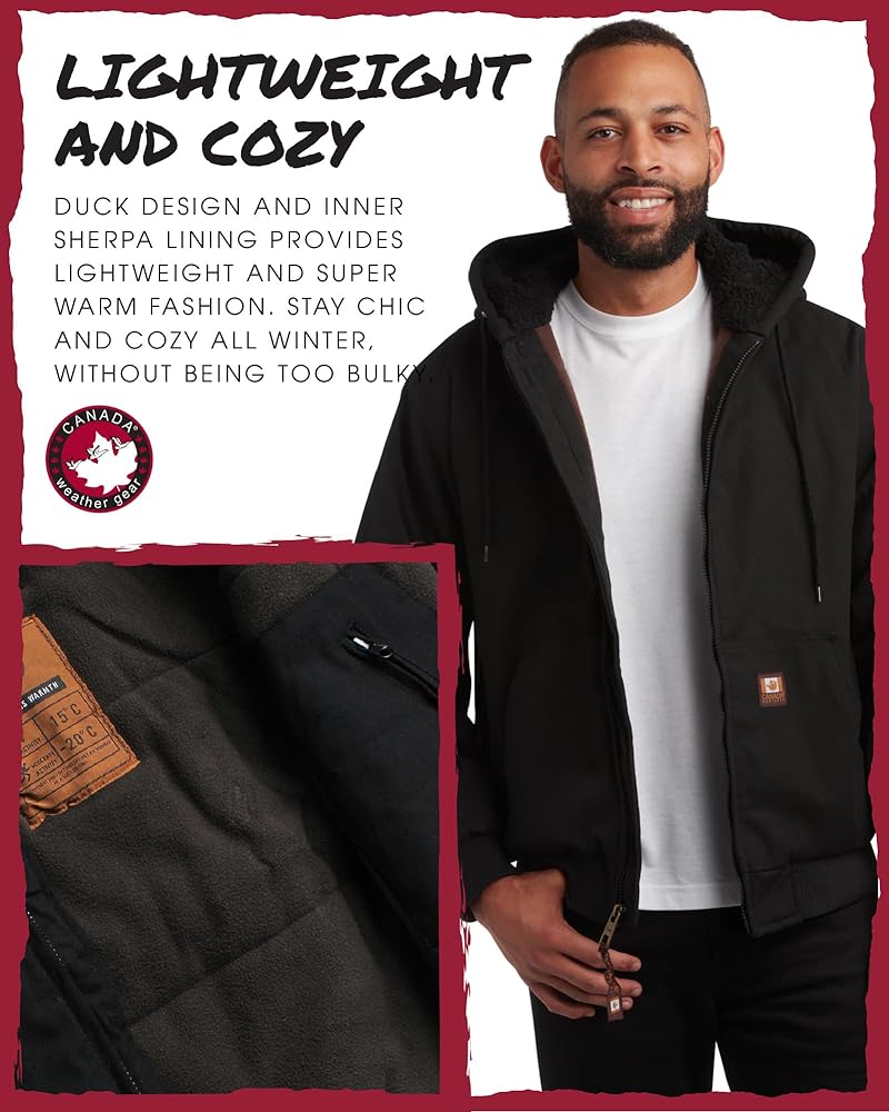 OFFICIALLY LICENSED CANADA WEATHER GEAR: Men's Duck Bomber Work Jacket; We embrace all weather and all of the traditions that come with it, providing affordable, on-trend apparel and outerwear made for cozying it up or countering the cold