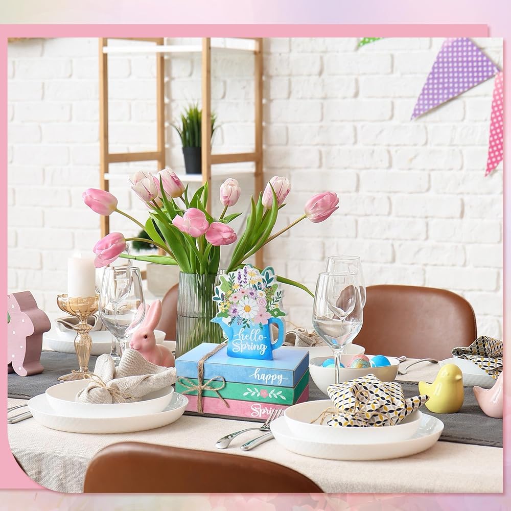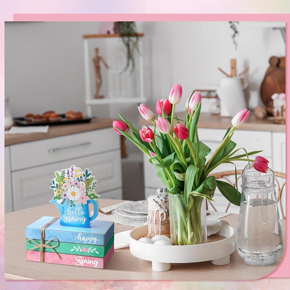 Burbell Hello Spring ديكور صينية متدرجة ديكور زهرة كتاب المكدس ديكور مزرعة الربيع للمنزل سعيد سبينج الجدول المركزية مدخل ديكور المنزل لربيع عيد الفصح غرفة المعيشة غرفة نوم هدية