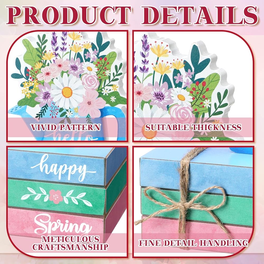سميكة وقوية: زينة لوحة الربيع المنزلية مصنوعة من خشب عالي الجودة، مصقول وناعم، بدون نتوءات، بدون رائحة، طلاء شفاف، ليس من السهل أن يبهت، أو يتشوه أو ينكسر، يمكن أن يزين غرفتك لفترة طويلة