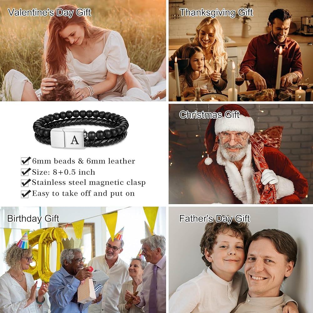 المقاس: مقاس سوار الخرز الجلدي هو 8 بوصات + 0.5 بوصة. الإغلاق المغناطيسي مصنوع من الفولاذ المقاوم للصدأ للحصول على مظهر بسيط وأنيق. تصميم المشبك المغناطيسي يجعل من السهل النقر للتثبيت على معصمك.