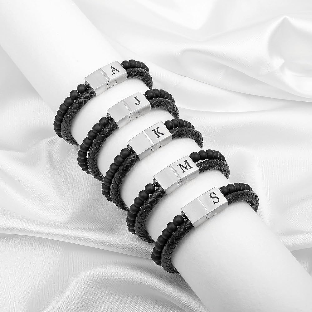 السوار الأولي: 26 حرفًا منقوشة على مشبك مغناطيسي من الفولاذ المقاوم للصدأ. السوار الأولي للرجال دعه يعرف أنه الأهم وأنك معه طوال الوقت. قم بتخصيص سوار أولي فريد وشخصي له.