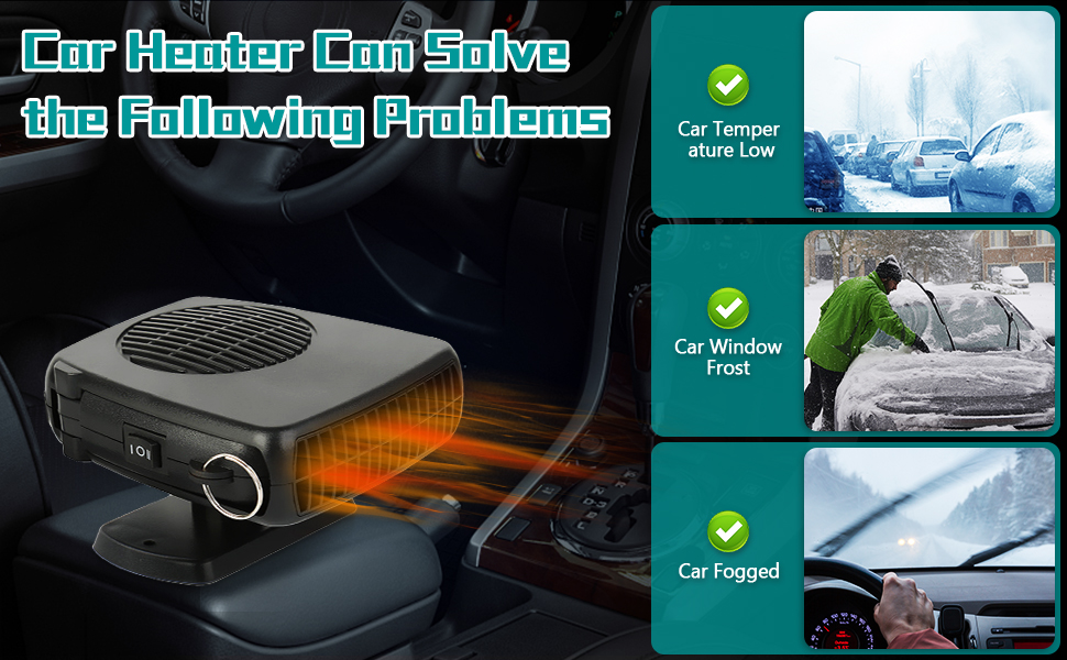 تطبيق واسع: يمكن استخدام سخان السيارة 12 فولت لإزالة الجليد وإزالة الثلج وإزالة الضباب ومضاد للتجمد الزجاجي. تصميم مضغوط، رائع للسيارة والشاحنات والقافلة عند التخييم والسفر. بالنسبة لأولئك الذين لديهم سيارات، فهي أفضل هدية لهدية عيد الشكر لعيد الميلاد في الشتاء البارد.