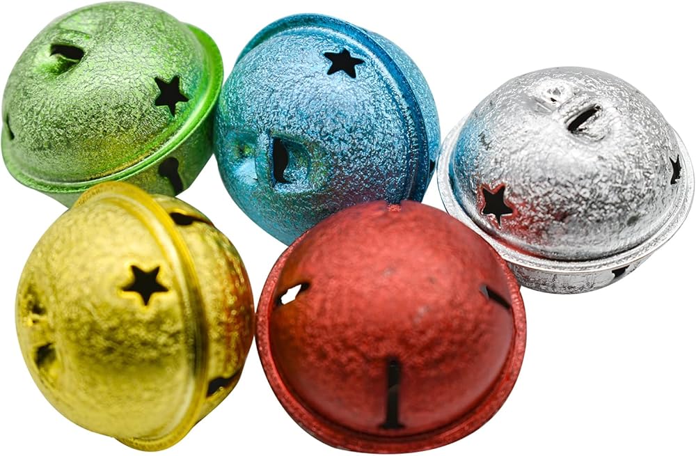40 قطعة 37 مم/1.45 بوصة جرس حرفي مزخرف ملون بلوري جلجل جرس معدني لامع مع فتحات على شكل نجمة لحفلات العطلات منزل مزلقة DIY زخرفة معلقة