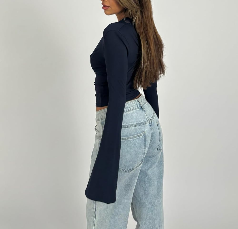Style: Embrace the Y2K aesthetic with the bell sleeves and lace detailing of this long sleeve going out top, adding a touch of vintage-inspired charm to your wardrobe.