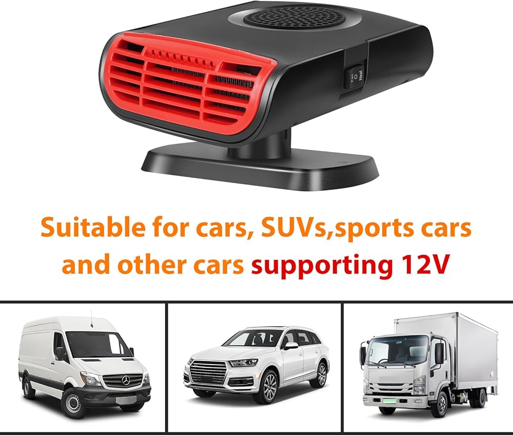 【يستخدم على نطاق واسع】سخان السيارة الصغير هذا مثالي للسيارات وسيارات الدفع الرباعي وسيارات الأجرة وسيارات الجيب والشاحنات وغيرها من المركبات الشائعة لإبقائك دافئًا أثناء الشتاء. إنه رائع لإزالة الضباب أو إزالة الجليد من جميع المركبات 12 فولت أثناء التخييم أو السفر - مما يبقيك دافئًا في الشتاء وباردًا في الصيف!