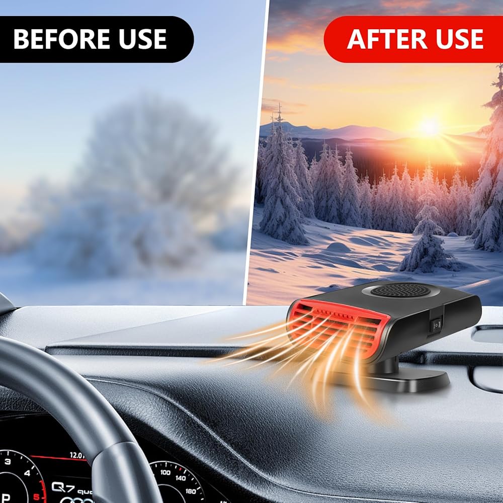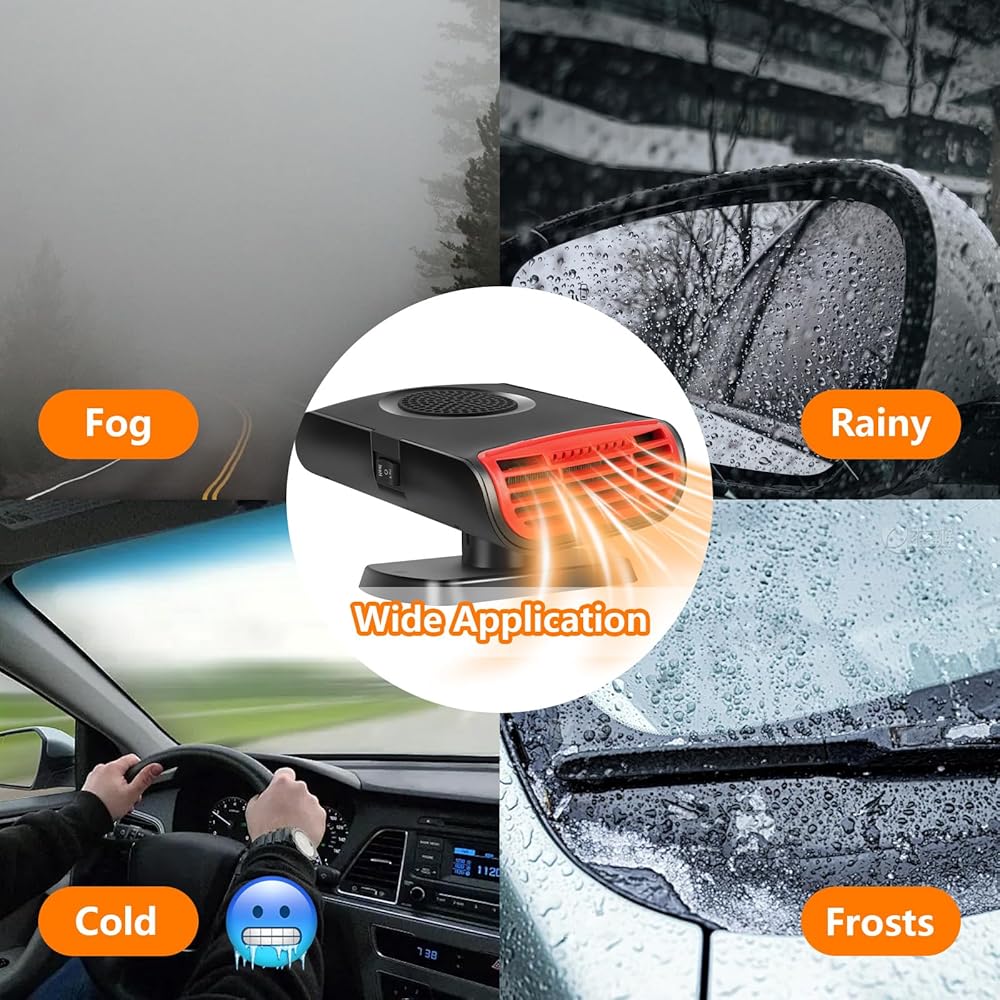 تسخين سريع: يقوم سخان السيارة القوي الخاص بنا بتدفئة الهواء في دقيقة واحدة فقط، مما يجعل قيادتك الشتوية أكثر راحة! يقوم مزيل الصقيع عن الزجاج الأمامي بإزالة الضباب والصقيع من الزجاج الأمامي لسيارتك بشكل فعال، مما يضمن رؤية واضحة حتى تتمكن من السير على الطريق بأمان.