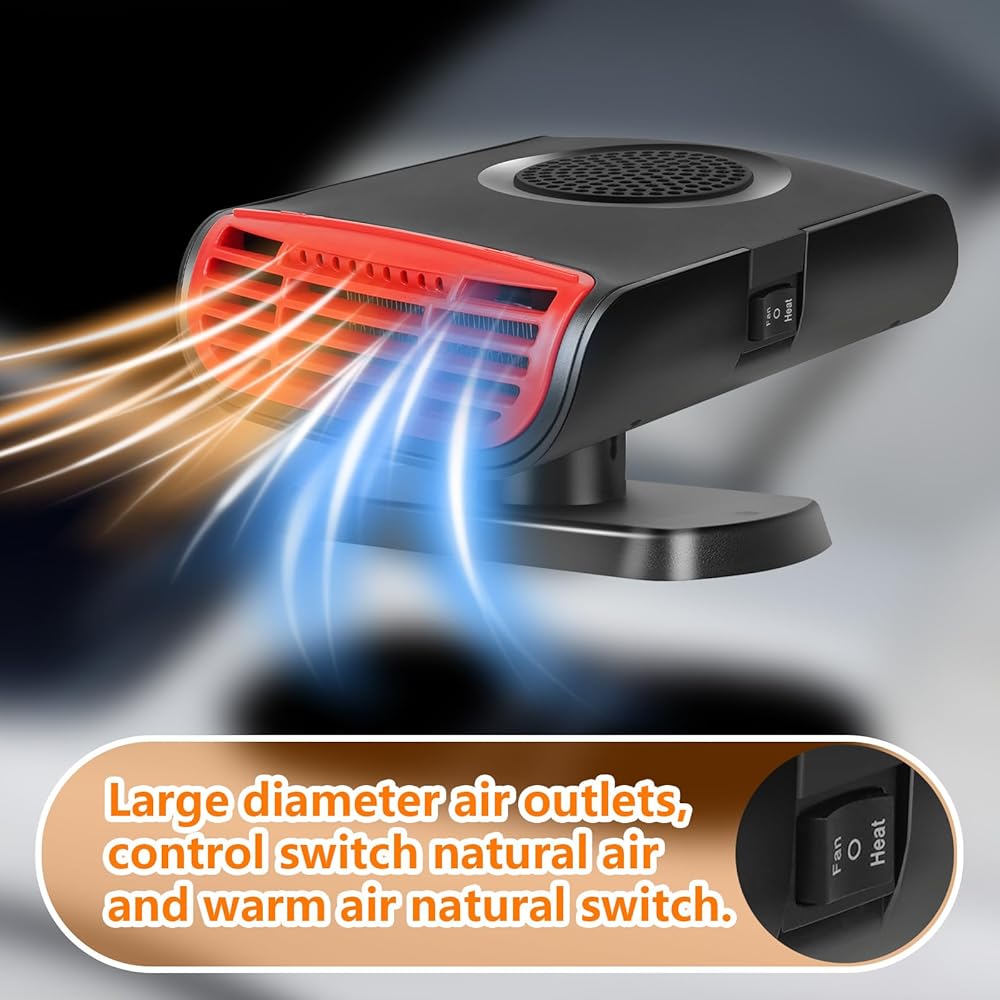 【وضعان في 1】مع وظائف مزدوجة تتميز بمفتاحين للهواء الطبيعي والهواء الساخن، يعتبر سخان السيارة هذا مثاليًا لإزالة الجليد أو إزالة النوافذ والزجاج الأمامي في الشتاء. بالإضافة إلى ذلك، فهي تعمل كمروحة للمساعدة في تبريد سيارتك خلال فصل الصيف!