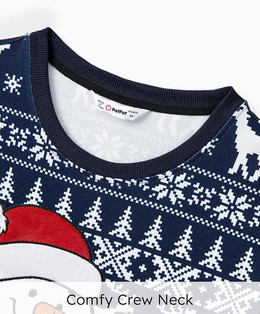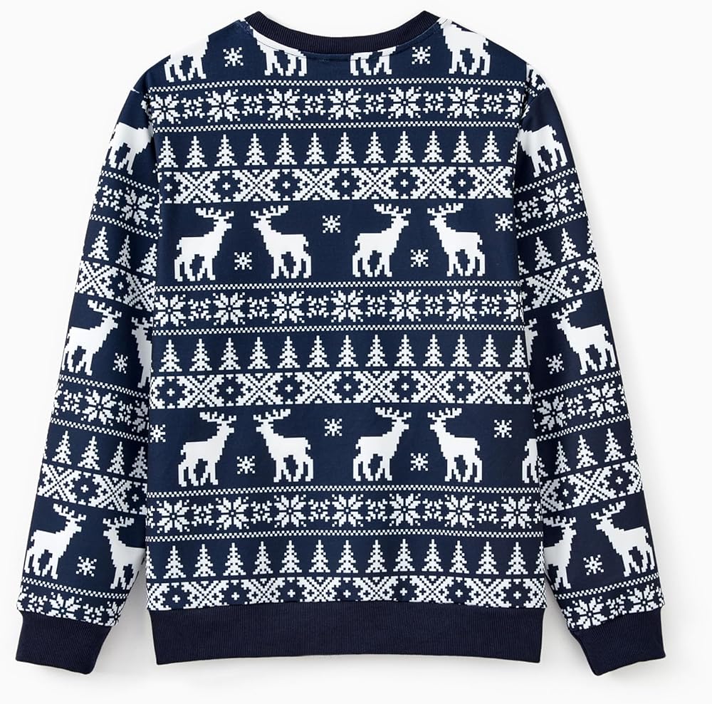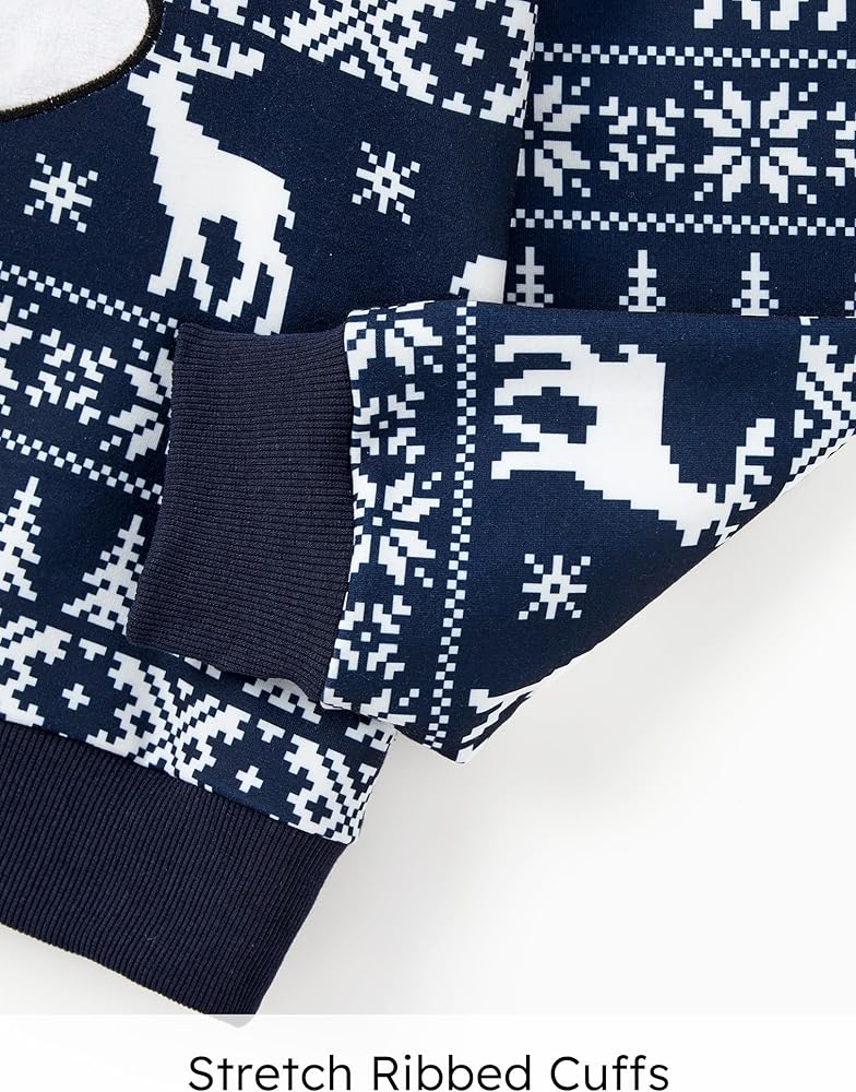 نسيج مريح: يتكون السويت شيرت بشكل أساسي من البوليستر والألياف لدنة، ناعم ومريح، مع مرونة جيدة وتهوية جيدة، مما يضمن أن تشعر جميع أفراد الأسرة بالراحة أثناء ارتداء الاحتفالات لفترة طويلة خلال موسم العطلات.