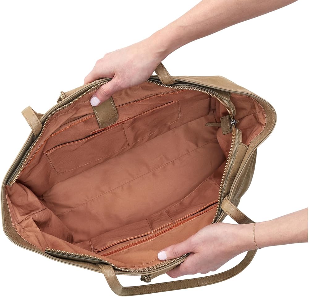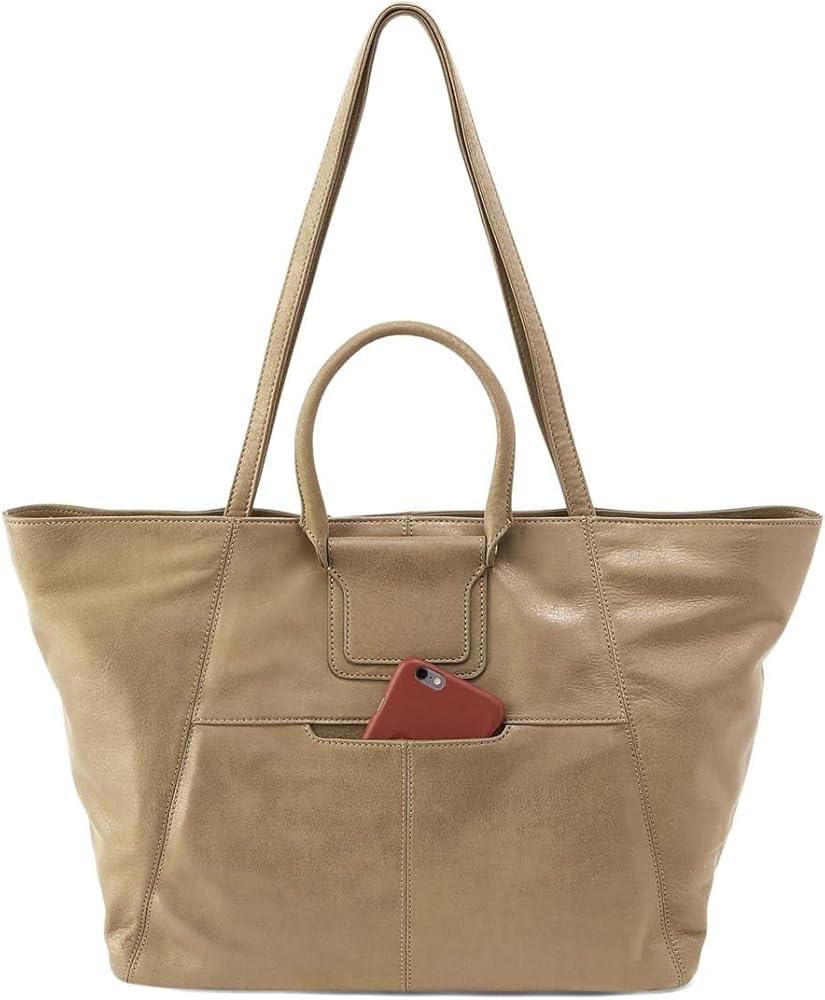 Carry comfort and style with the HOBO Sheila E/W Tote. Crafted from leather, this bag features two carry handles, one shoulder strap, and zippered closure. It comes with padded tech pocket for small laptops and tablets, four slip pockets, one zippered interior pocket, and one pen pocket. Leather lining.